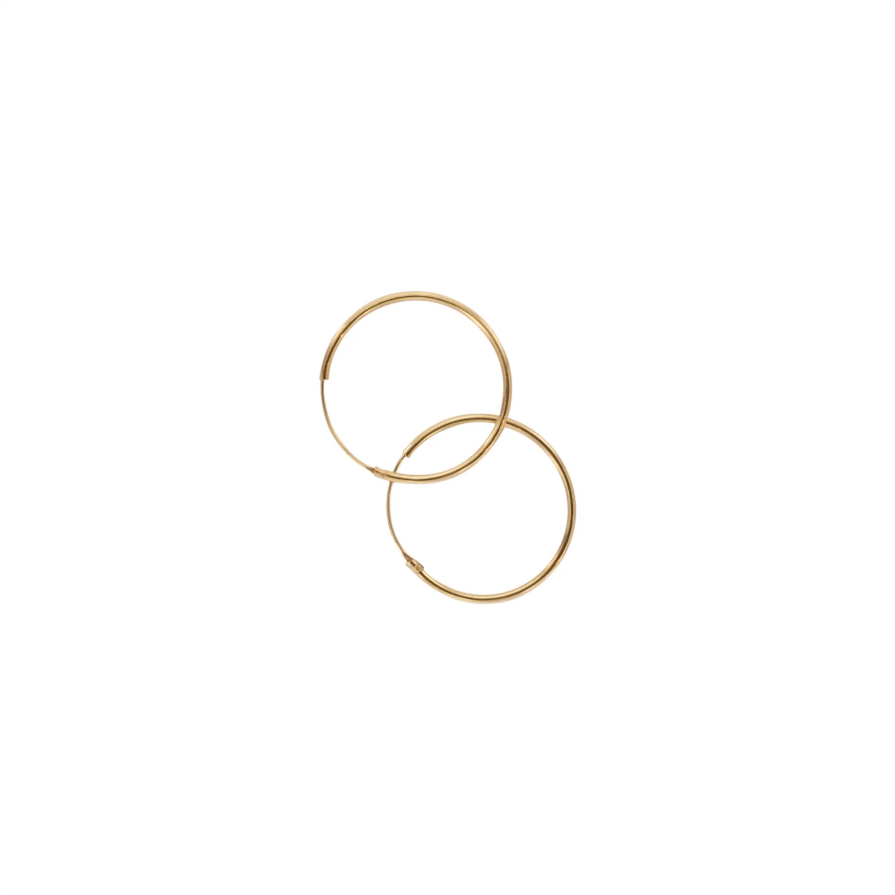 Disse klassiske hoops er lavet i sterlingsølv og forgyldt med 24 karat guld, som giver ekstra holdbarhed og et smukt, varmt udtryk. Størrelsen gør dem til et perfekt mellemled – elegante nok til hverdag og stærke nok til at fungere som et stilrent statement.
