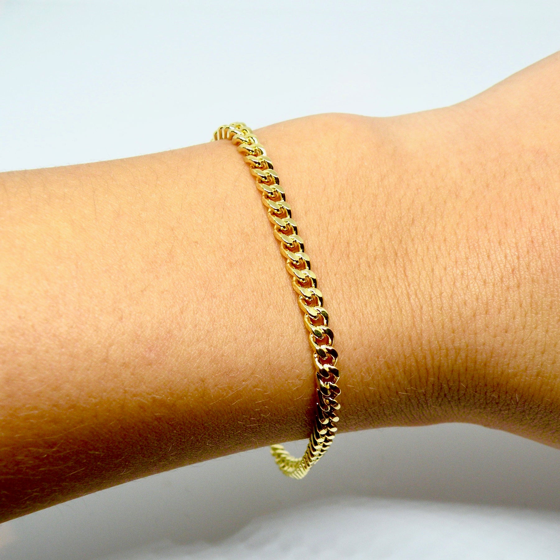 Bracelet, armor facet chain, gilded brass, 17-19 cm/3.5 mm