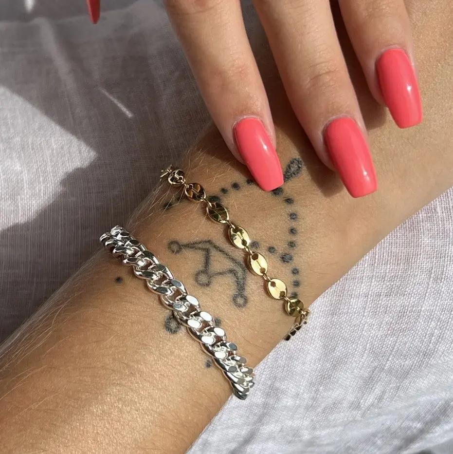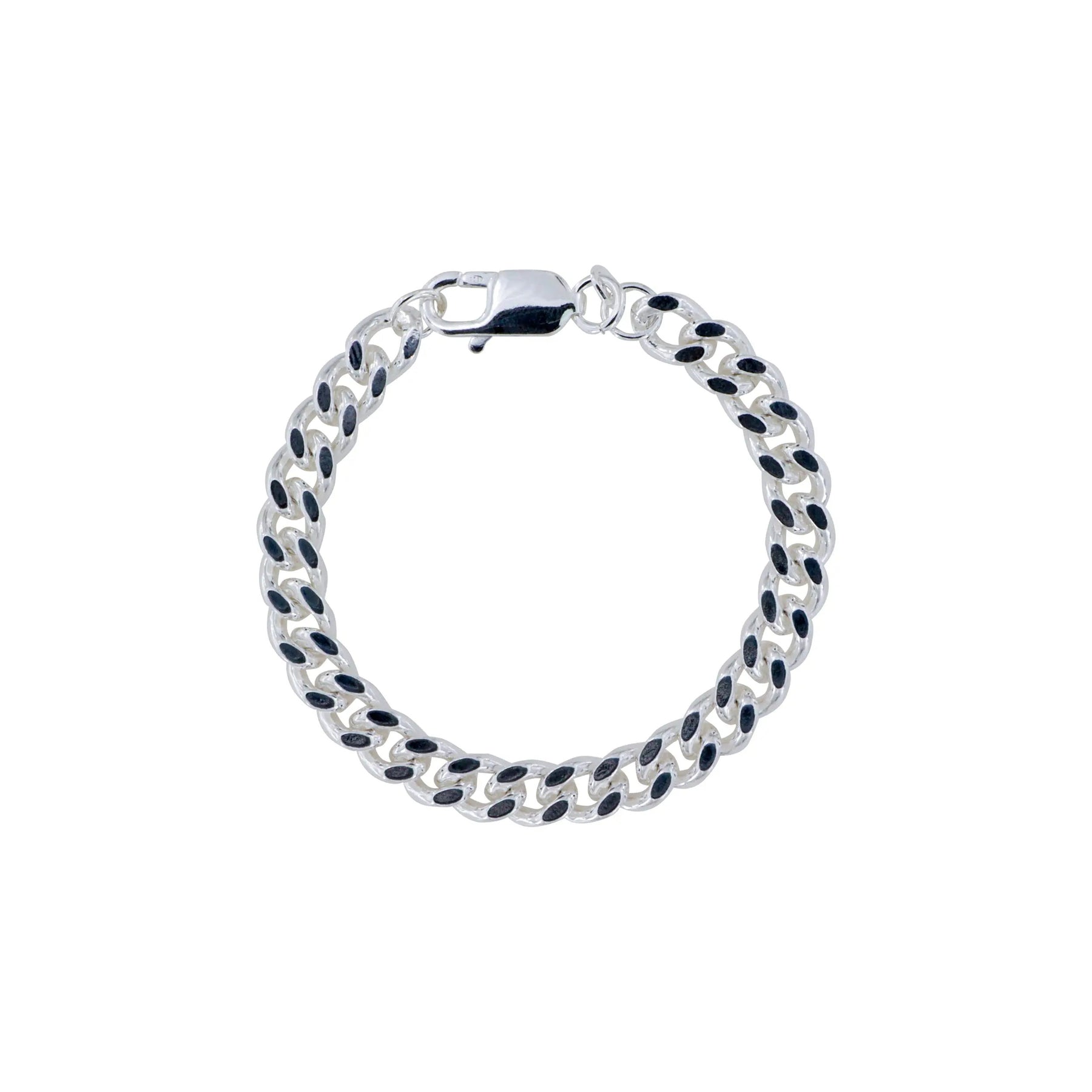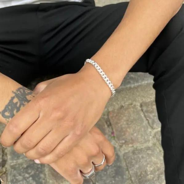 Chunky Armbands of Panser Facet chain in certified recycled sterling silver.