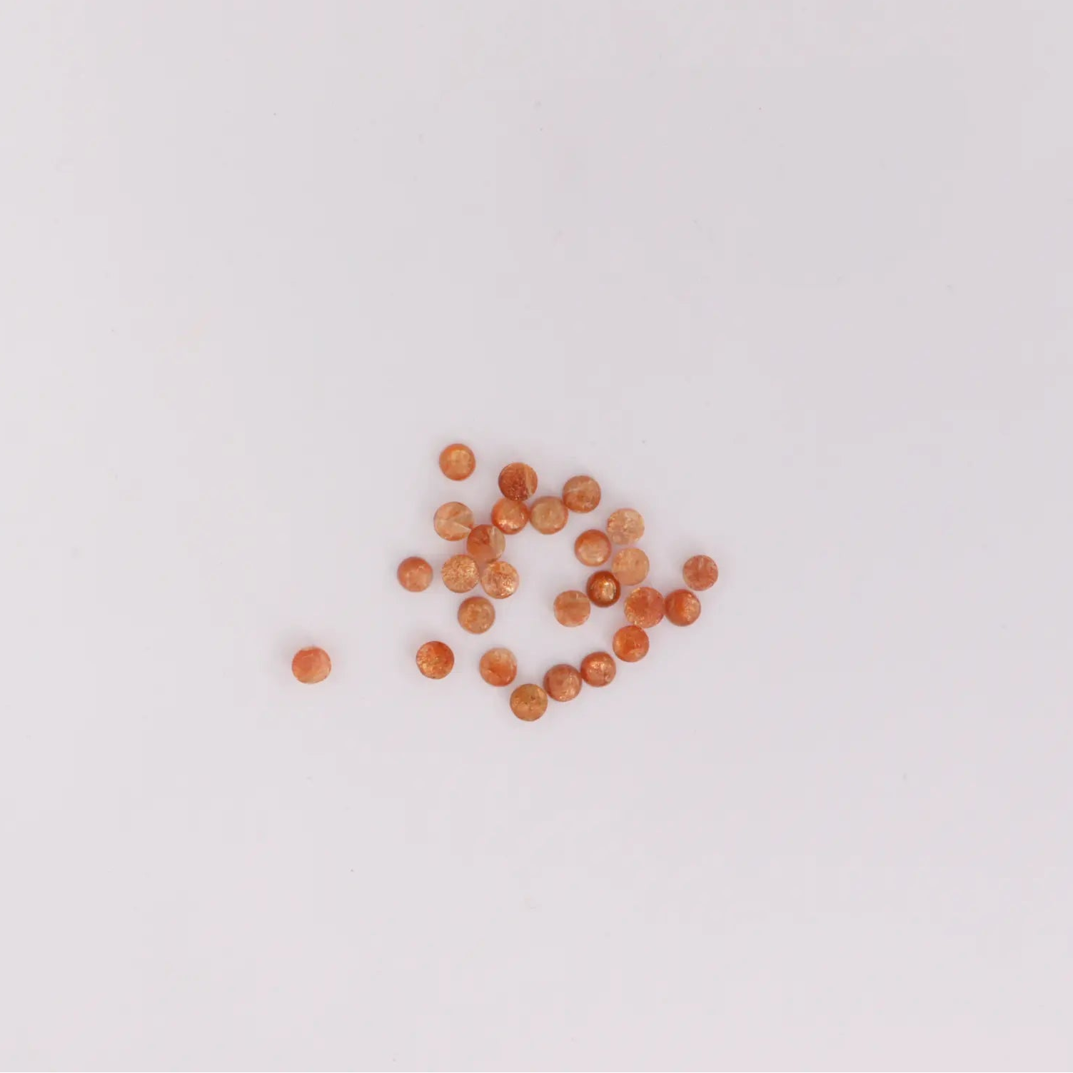 Smukke runde solstens cabochoner med den karakteristiske varme glød og fine glimmerspil, som solstenen er kendt for. De glatte cabochoner er ideelle til smykkefremstilling som ringe, øreringe, vedhæng eller andre indfatninger, hvor stenens naturlige spil får lov at komme i fokus.