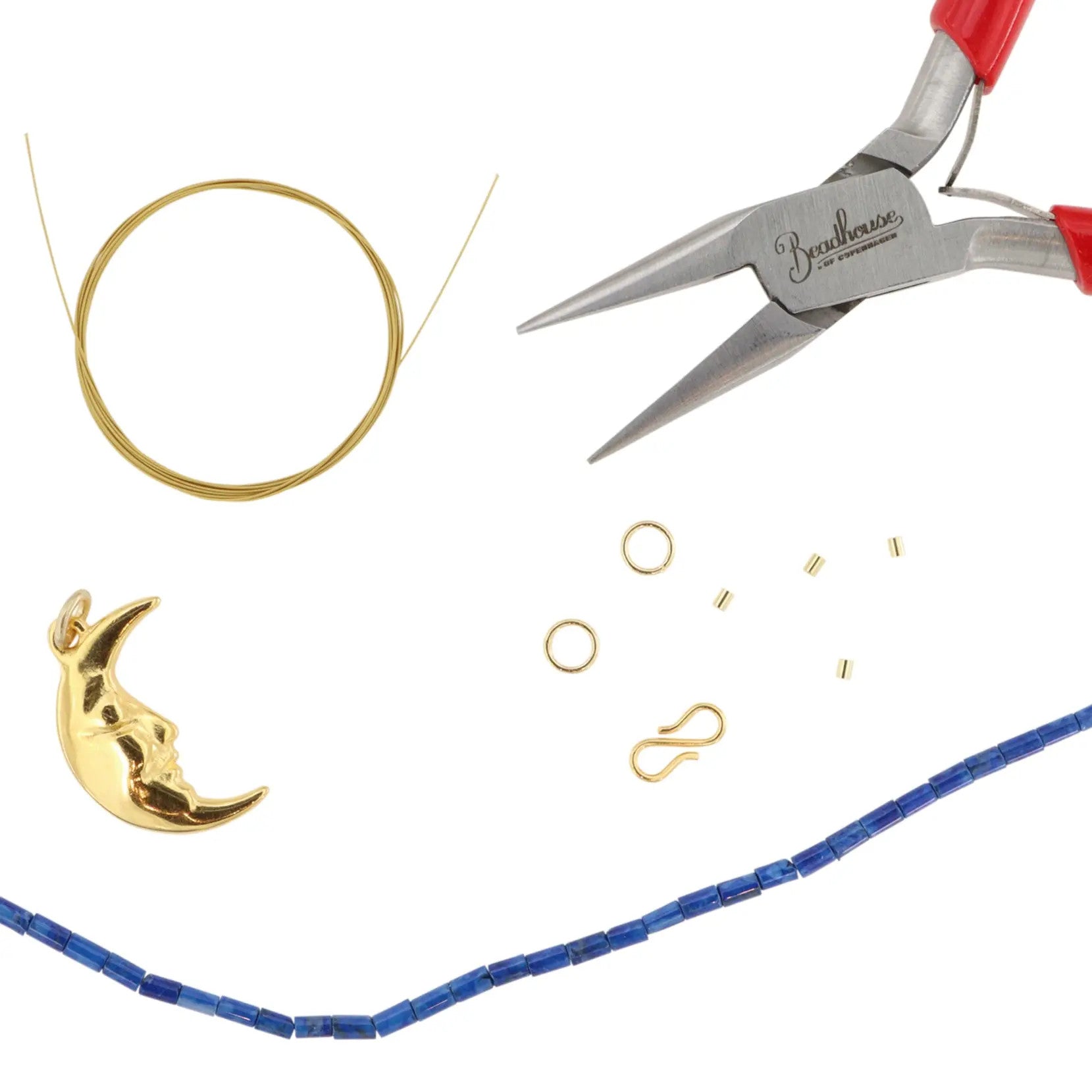 DIY kit, necklace kit with sodalite pipe beads, gilded sterling silver