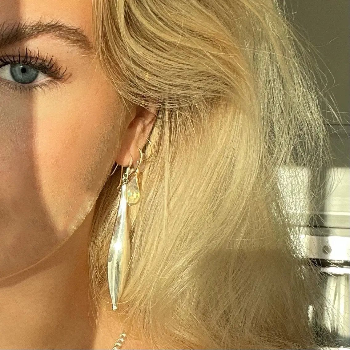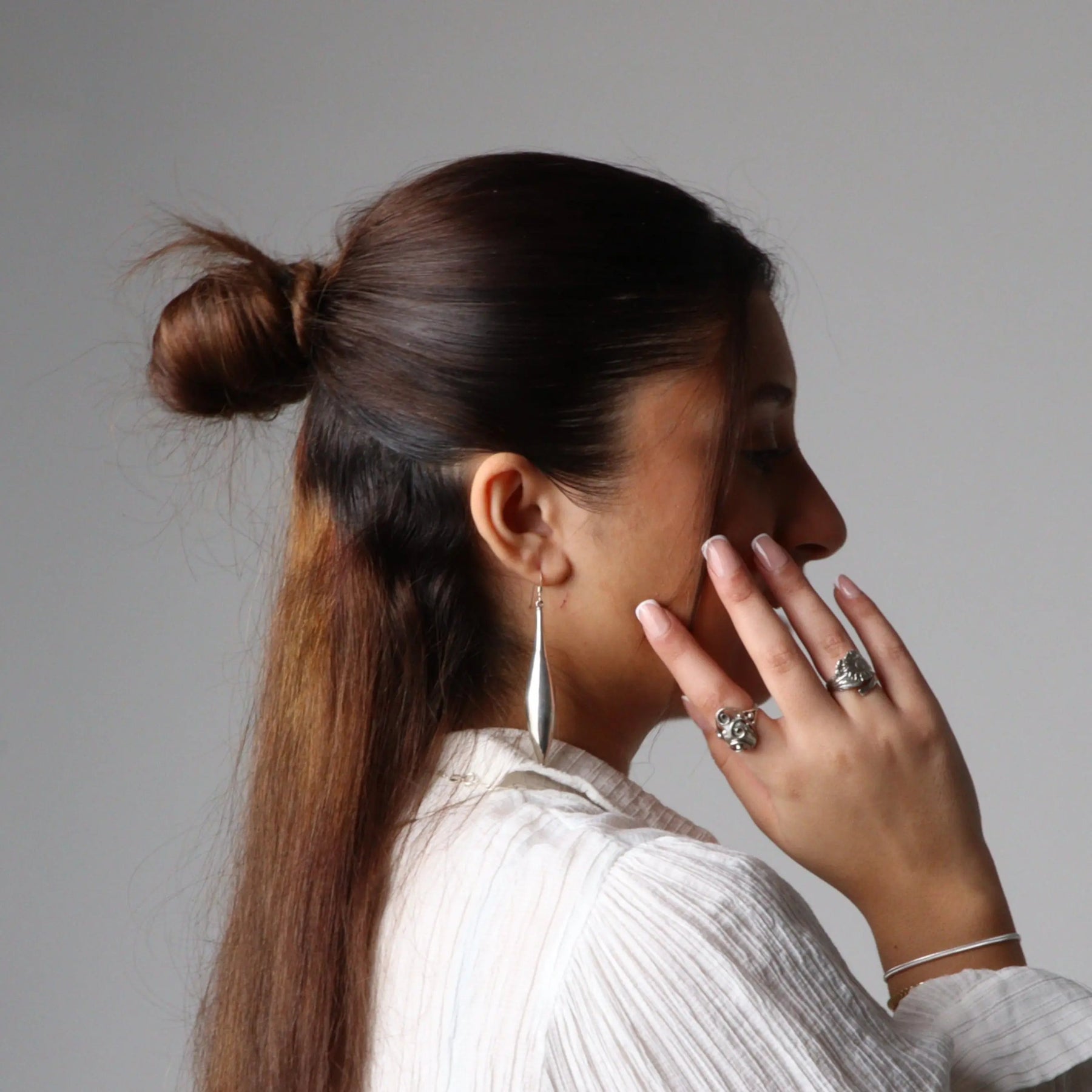 Earrings, ear hook long thin drop, sterling silver, 60 mm
