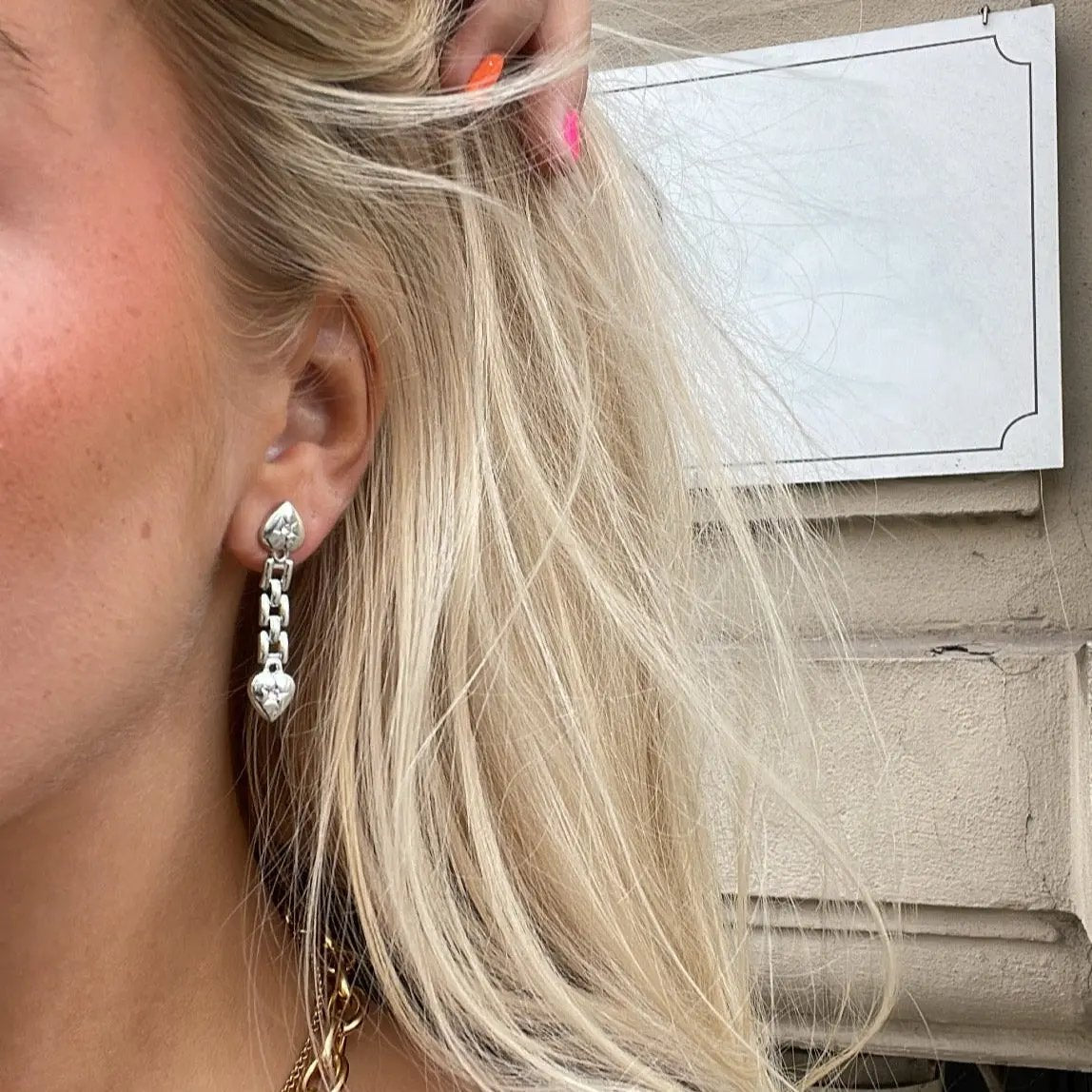 Earmosts of silver -plated brass with motifs of two hearts connected with a chain.
