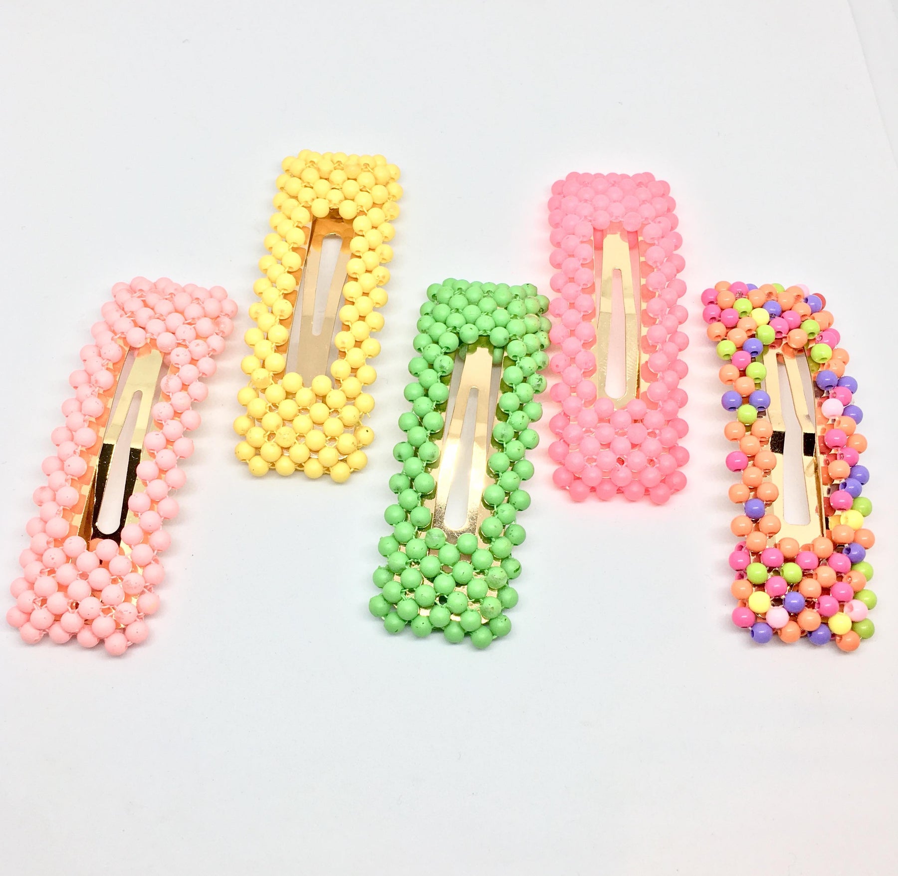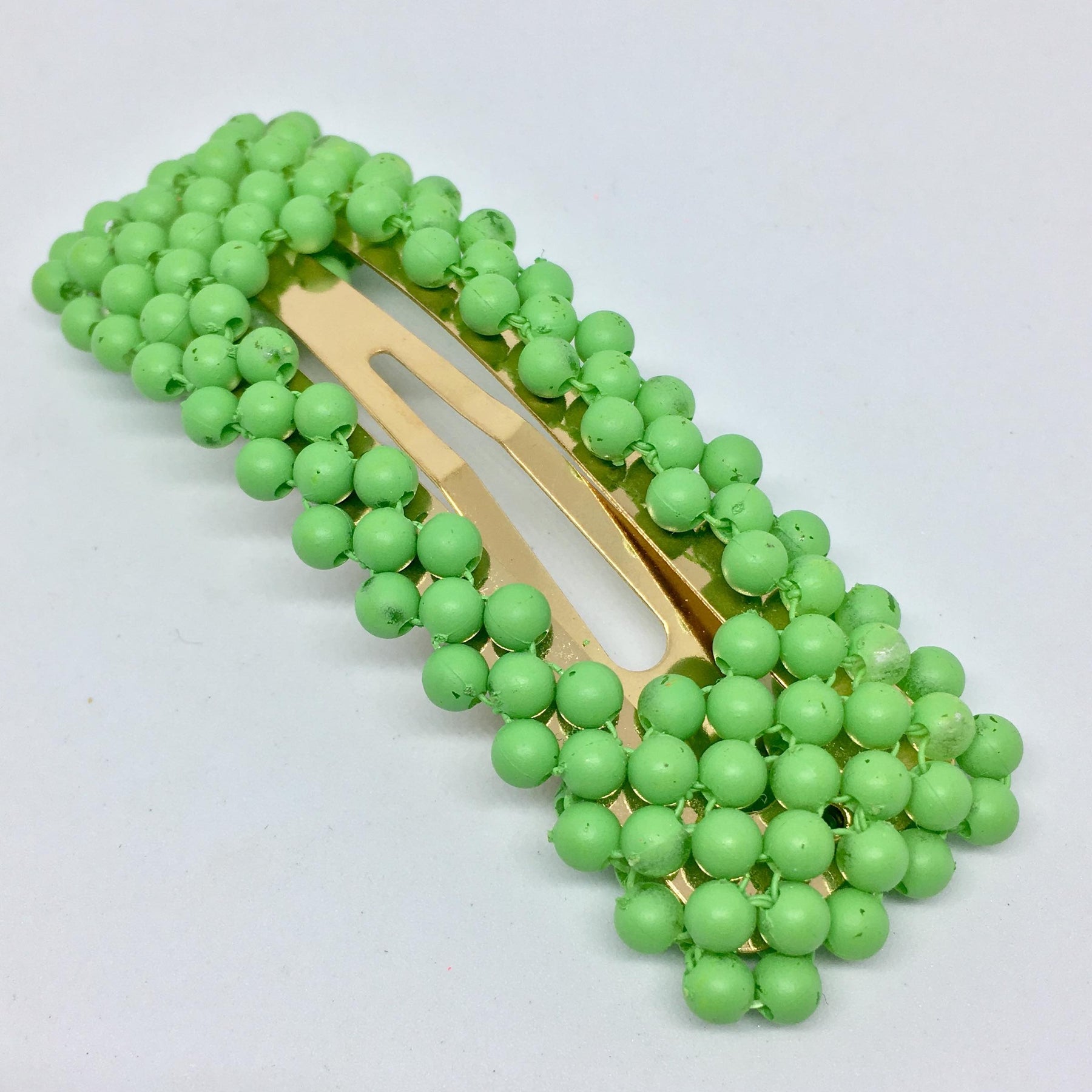 Click Hair buckle covered with small round plastic beads in summer colors. Choose from multiple colors.