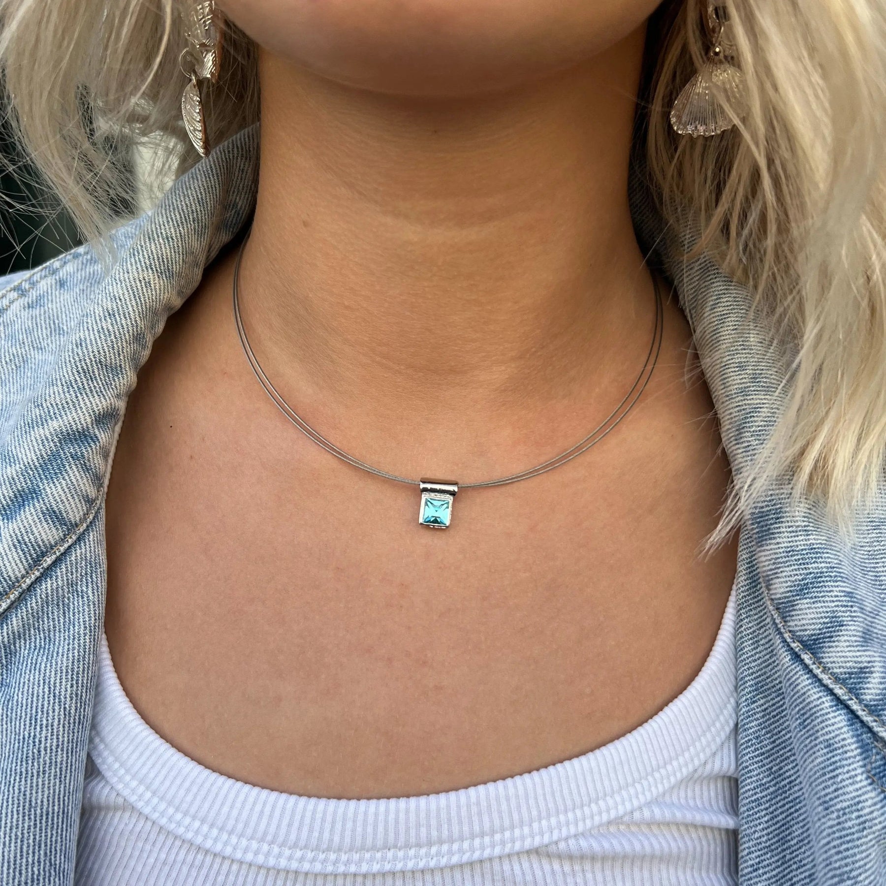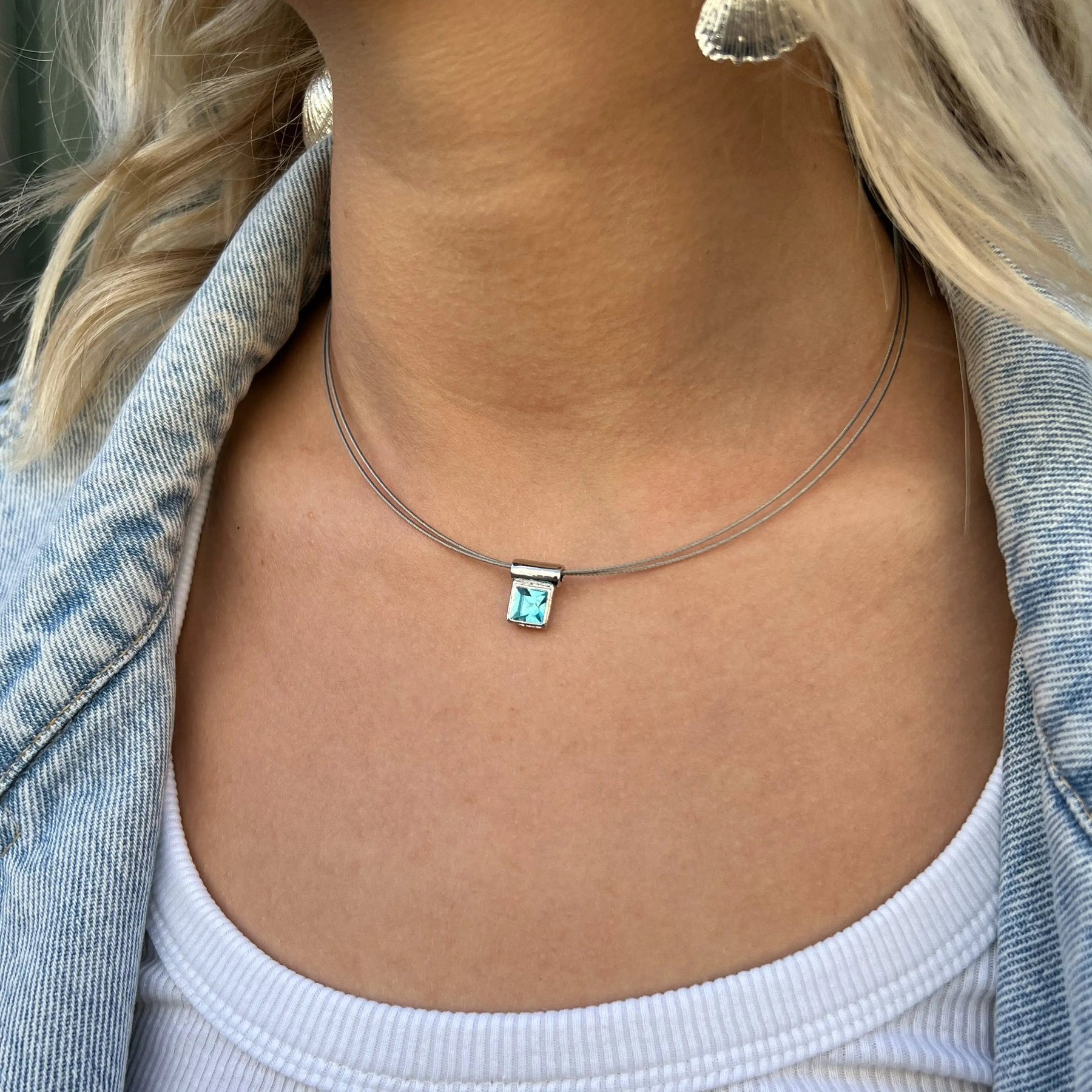 Vælg mellem to smukke varianter af krystaller for at tilpasse halskæden til din personlige stil – en lys blå for et iøjnefaldende statement eller en klar for et tidløst look. Med en længde på 40 cm ligger halskæden tæt om halsen og fremhæver dit outfit med sin enkle, men alligevel stilfulde æstetik. Uanset om du bærer det til hverdag eller ved særlige anledninger, vil dette smykke uden tvivl tilføje et elegant touch til dit look.