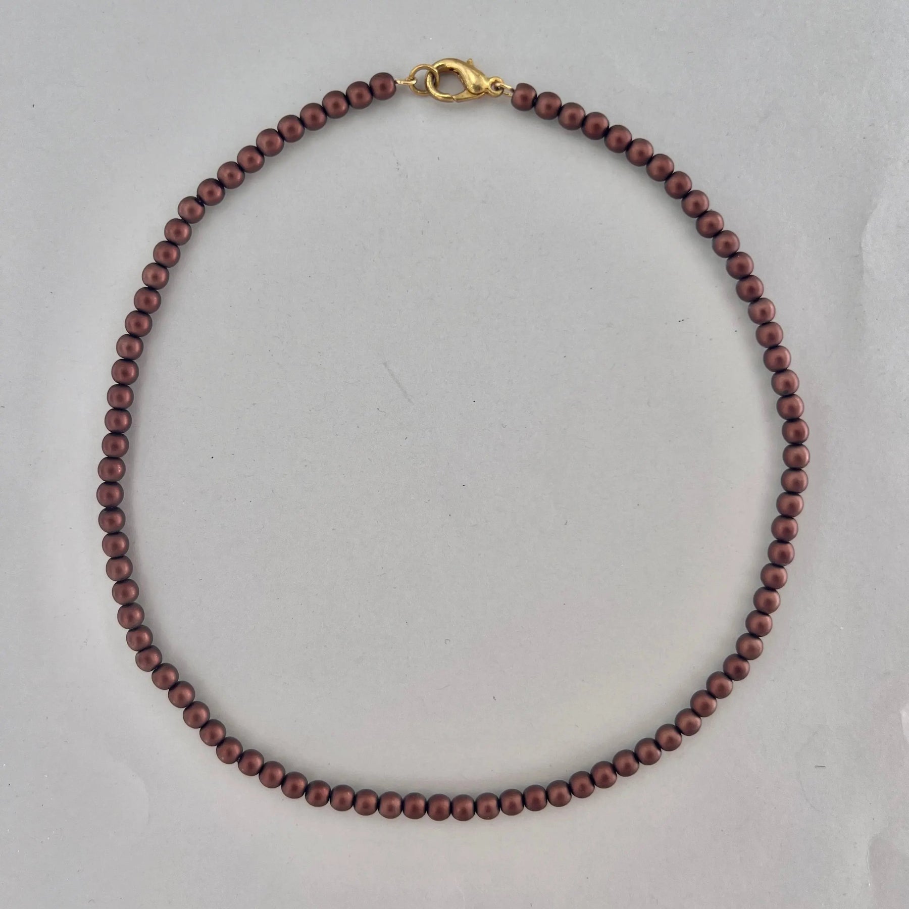 Halskæde, voksperlekæde, forgyldt messing, 42-44 cm