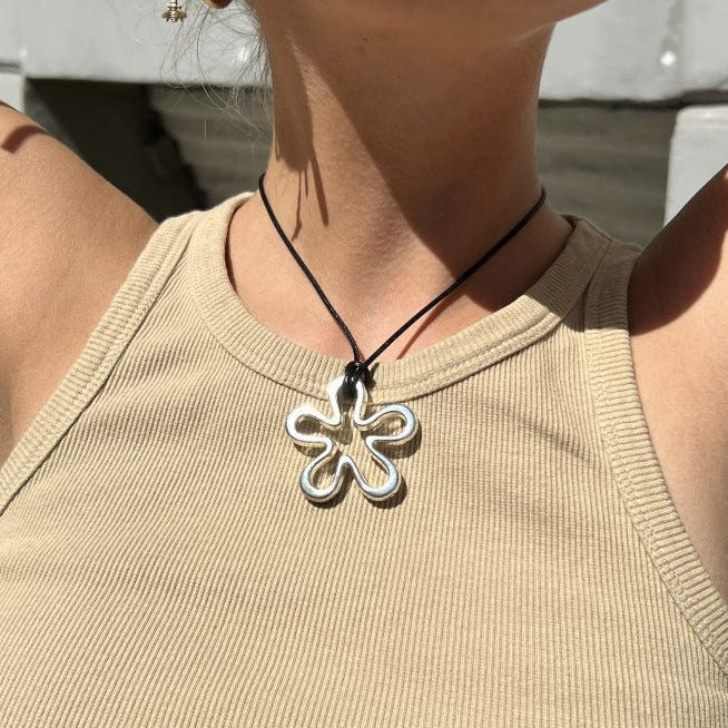 Pendant, flower contour, plastic coated with silver color, 44 mm