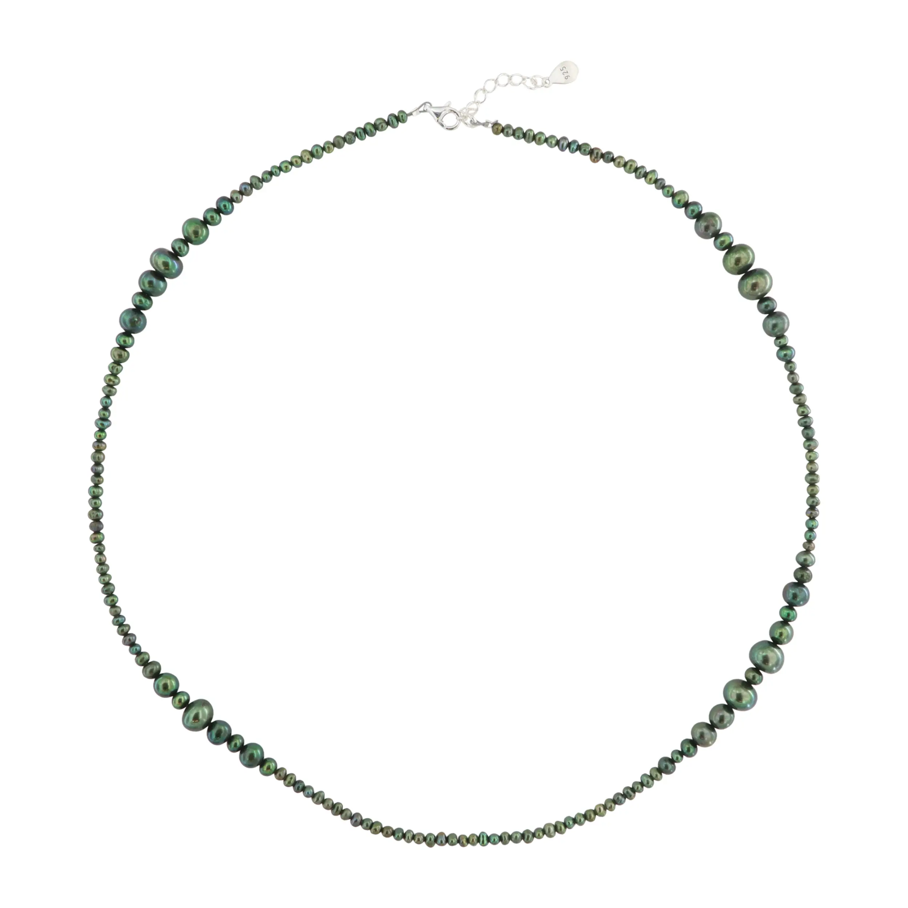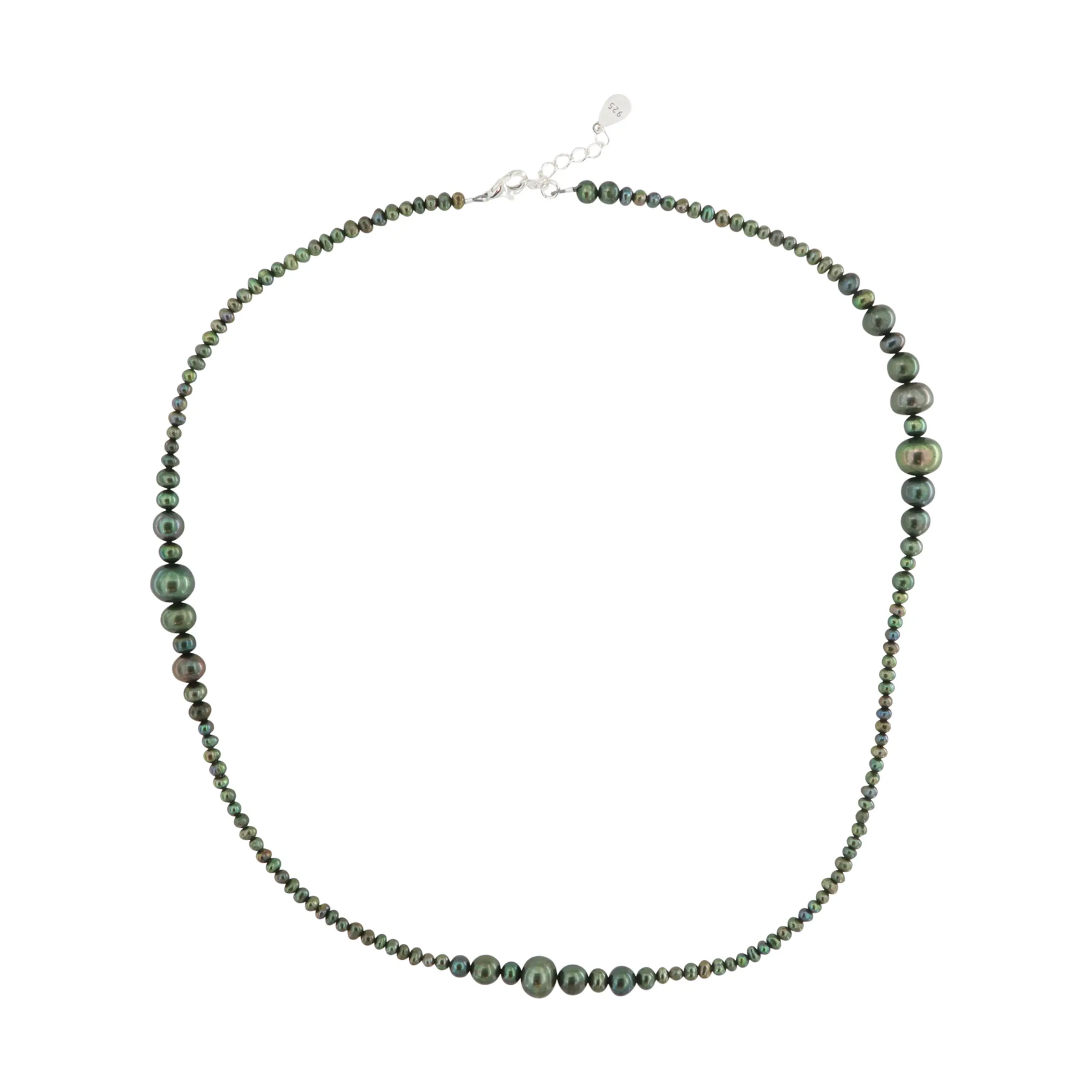 Necklace, green freshwater pearls, sterling silver, 40-50cm