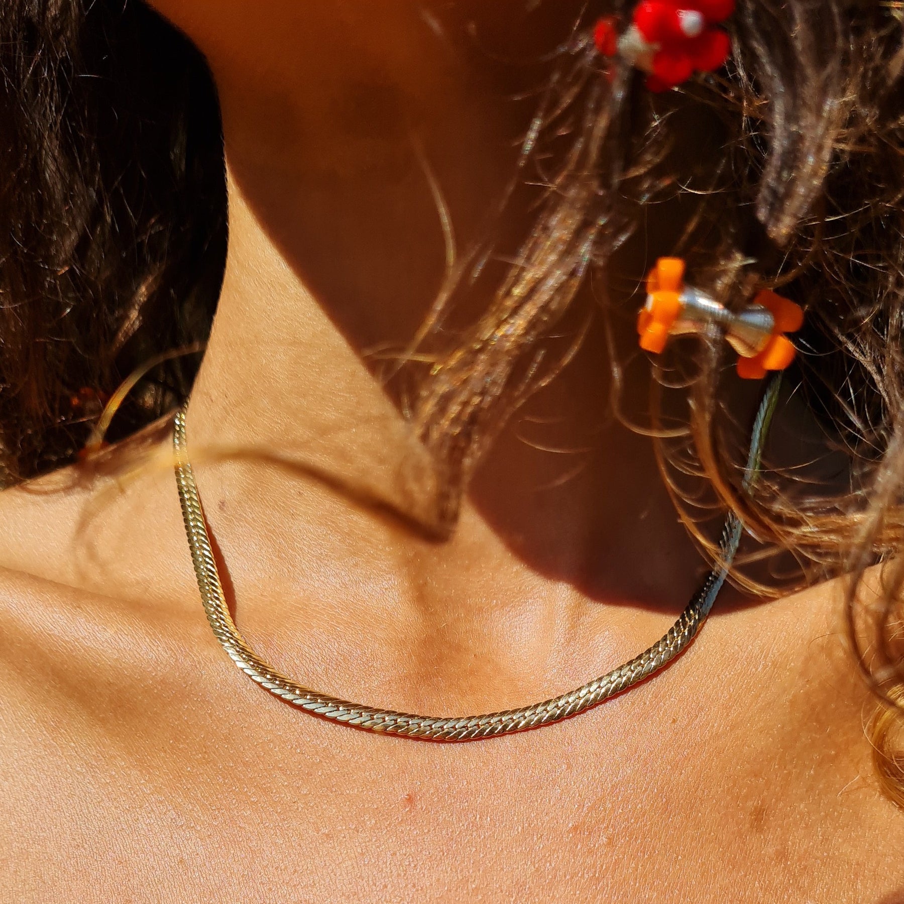 Necklace, herringbone chain, gilded brass, 40-50 cm/4 mm