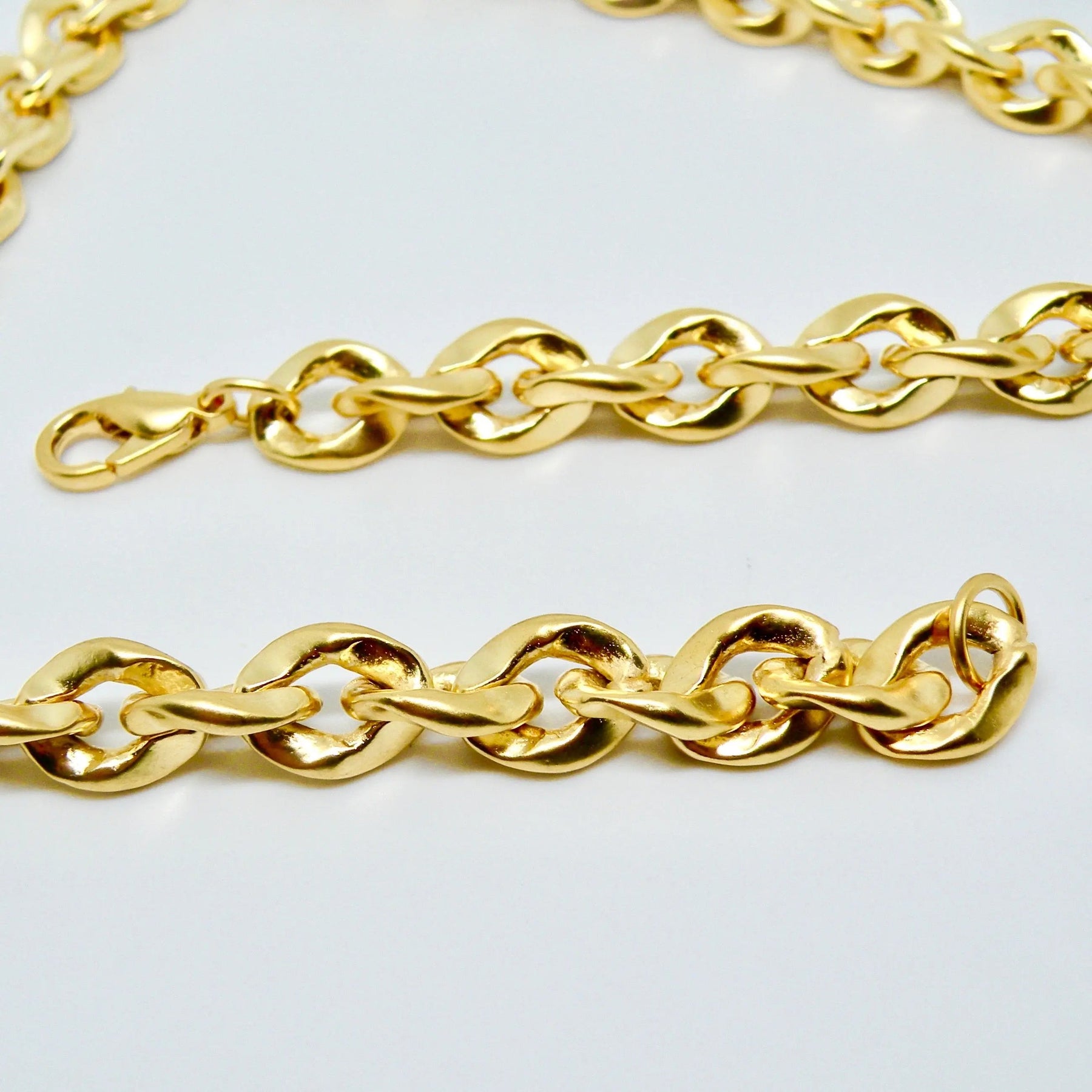 Necklace, chunky twisted anchor chain, gilded brass, 45 cm/8.5 mm