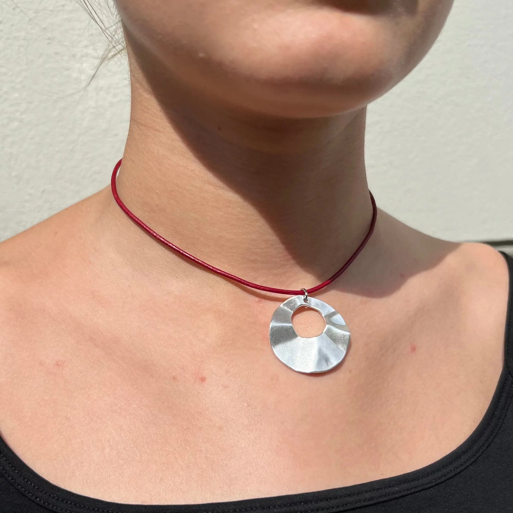 Experience the versatility and stylish simplicity with our leather nipple necklace, equipped with an elegant lock and jewelry parts in silver -plated brass. This necklace offers a perfect base to customize and showcase your favorite pendants. Choose from two lengths, 37 and 40 cm, to find the ideal fit for your look, and further personalize with the choice between three classic colors: red, brown or black.