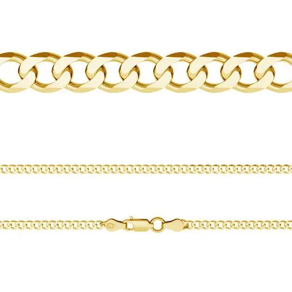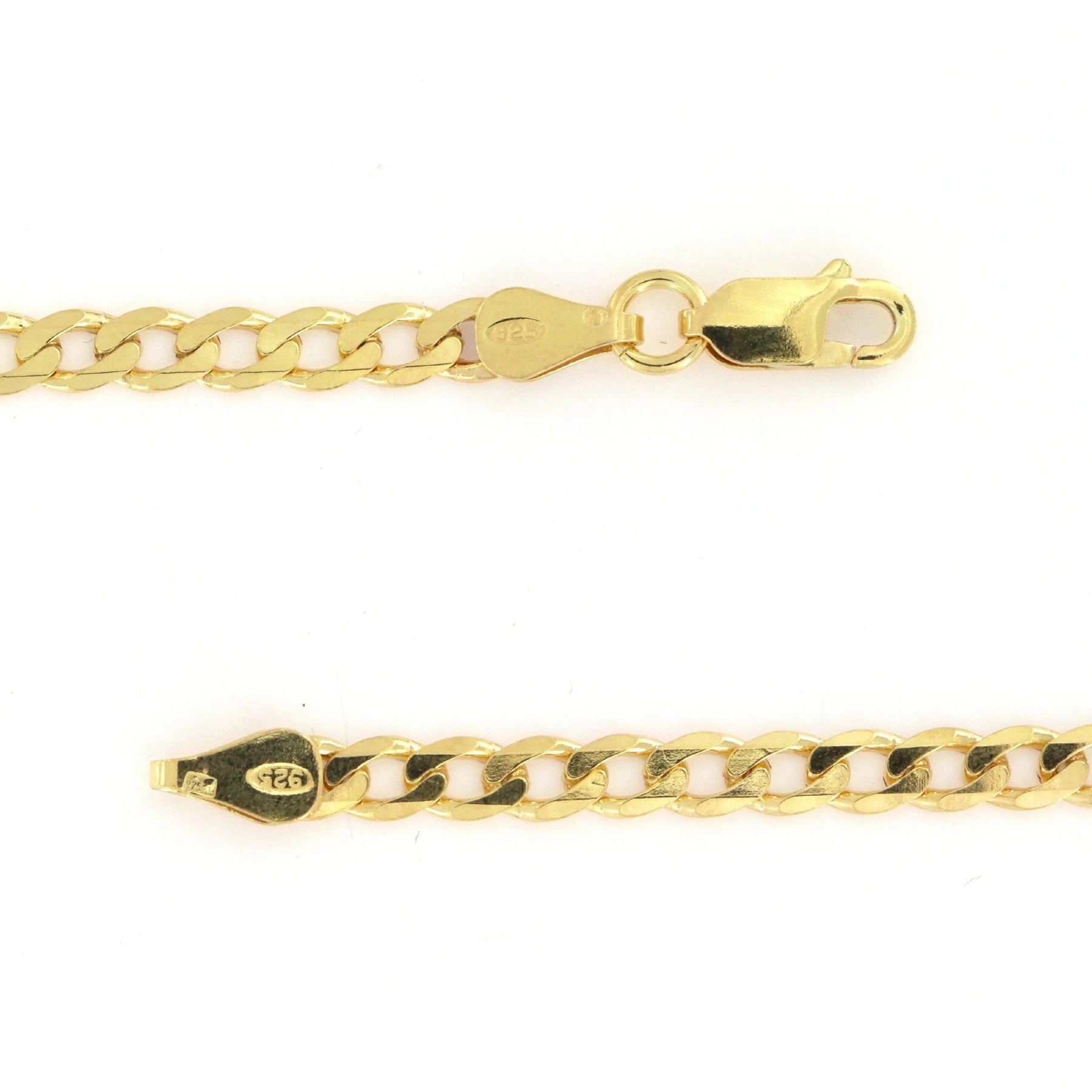 Necklace, armor facet chain flat, gilded sterling silver, 45 cm/4.5 mm wide