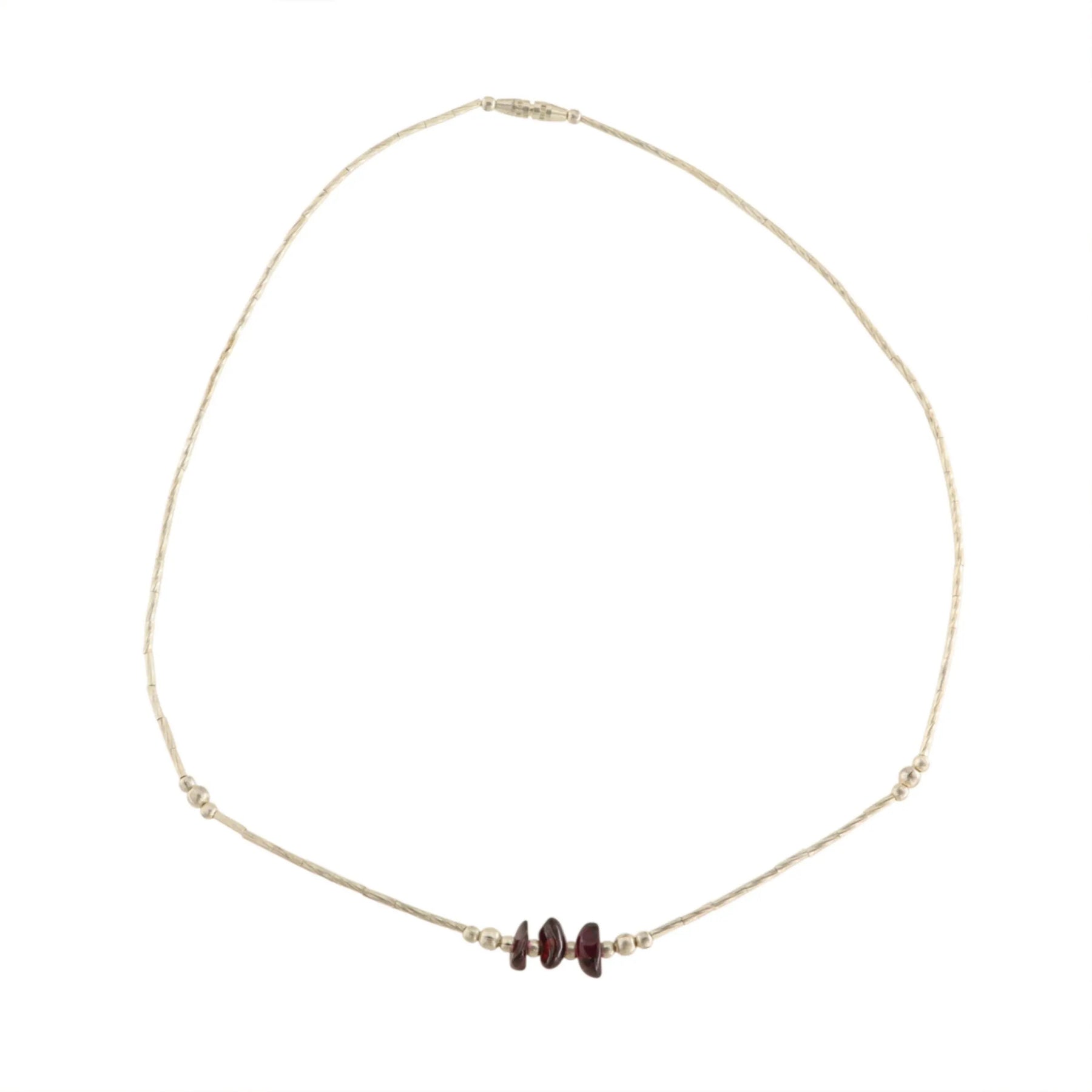 1. Garnet necklace: This necklace is 40 cm long and is adorned with deep red pomegranate stone, known for their beauty and depth.