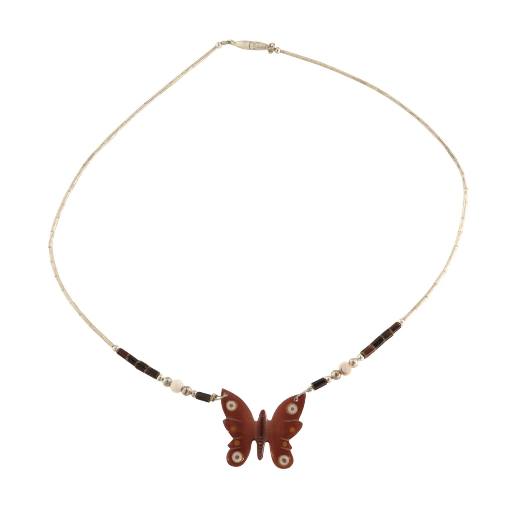 2. Brown stones and butterflies pendant necklace: With a length of 39 cm, this necklace combines aesthetically appealing brown stone with a delicate butterflies pendant.