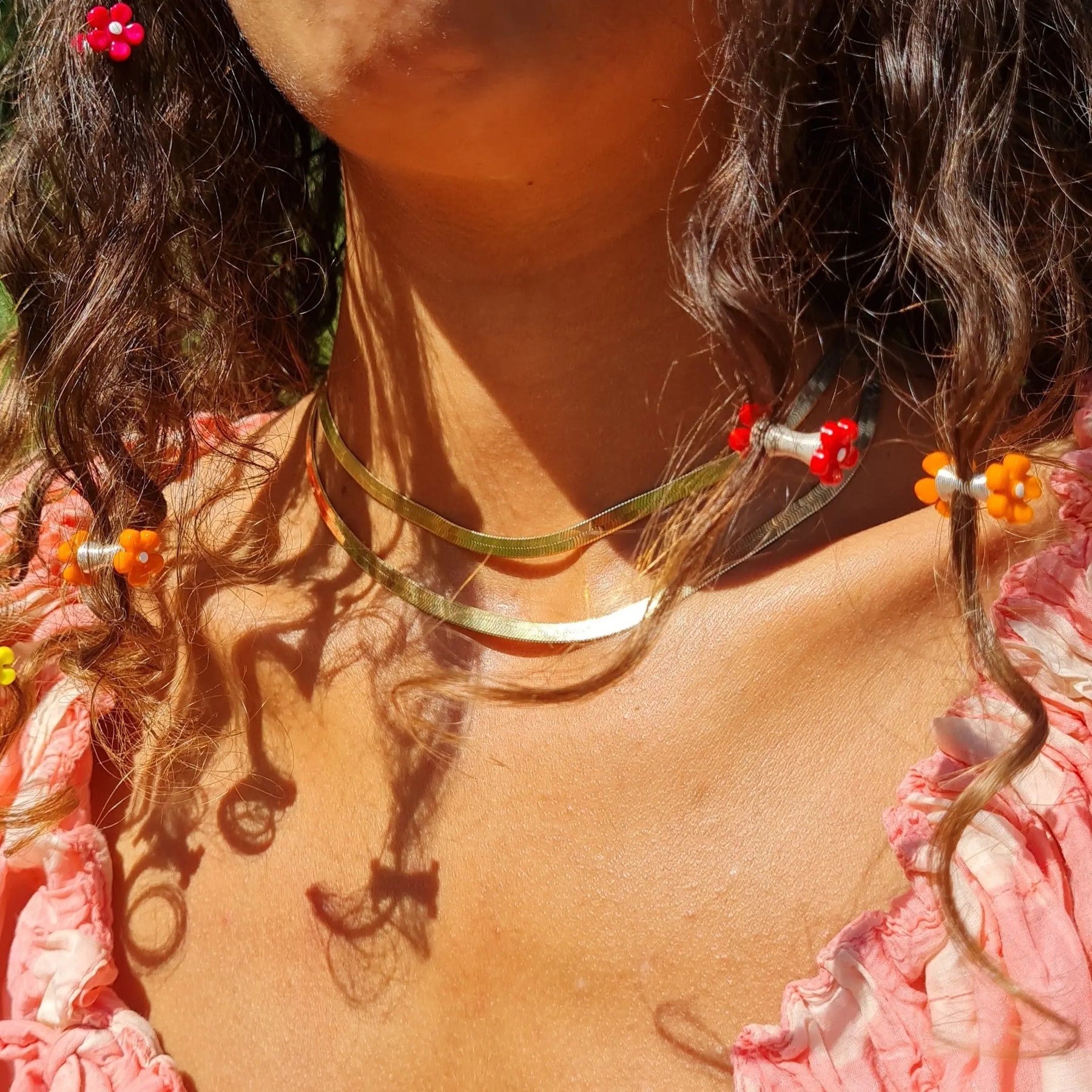 Wide flat snake necklace of certified recycling silver and fairtrade gold. The necklace is of sterling silver gilded with 18 carat gold paving. This necklace sits nicely close to the neck.