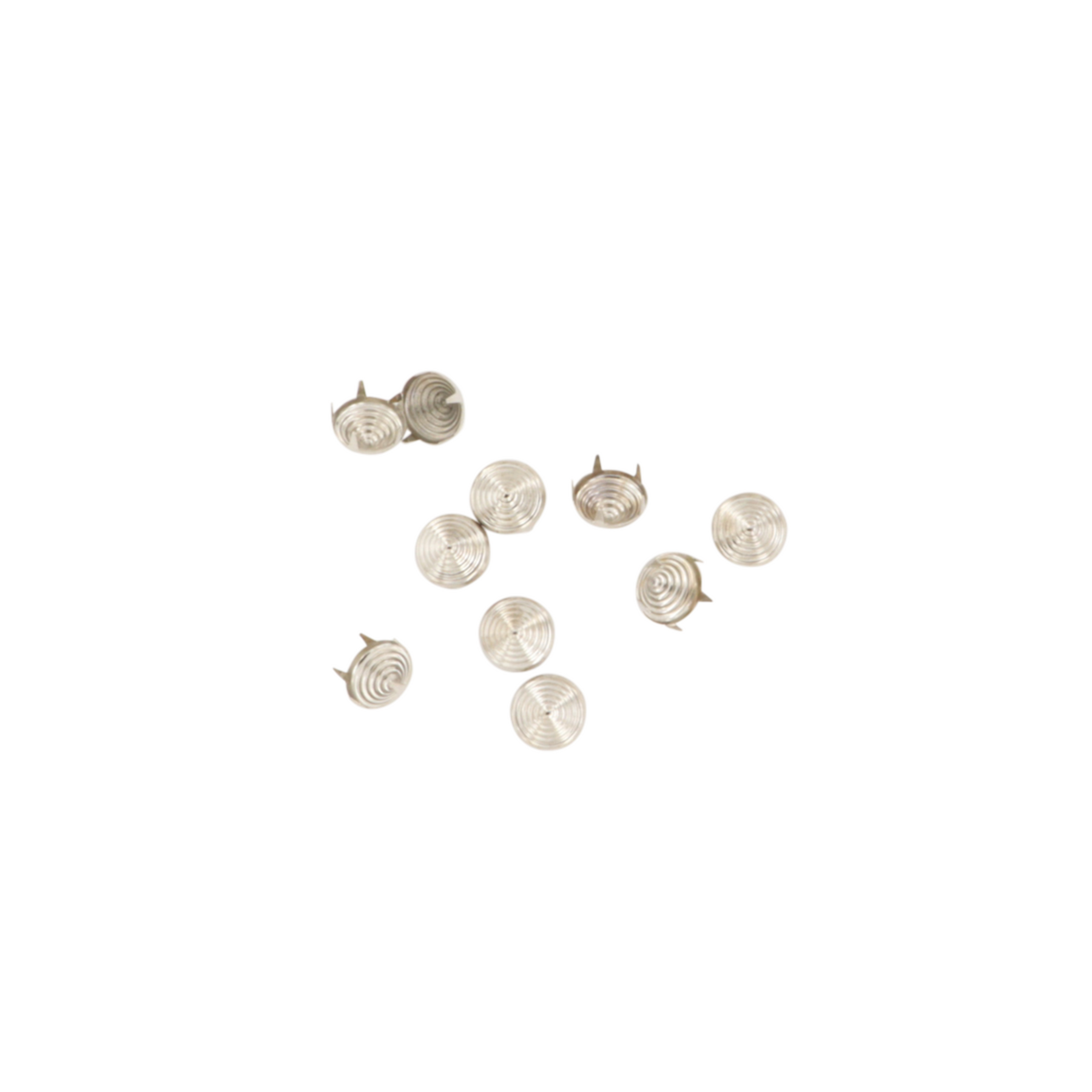 Nitterne er alsidige og kan bruges til alt fra klipklapper og tasker til tøj, sko og smykker – perfekte til at tilføje et personligt twist. I forgyldt messing fås de i størrelserne 14 mm, 12 mm og 5 mm, mens de i forsølvet messing fås i 9 mm og 5 mm.