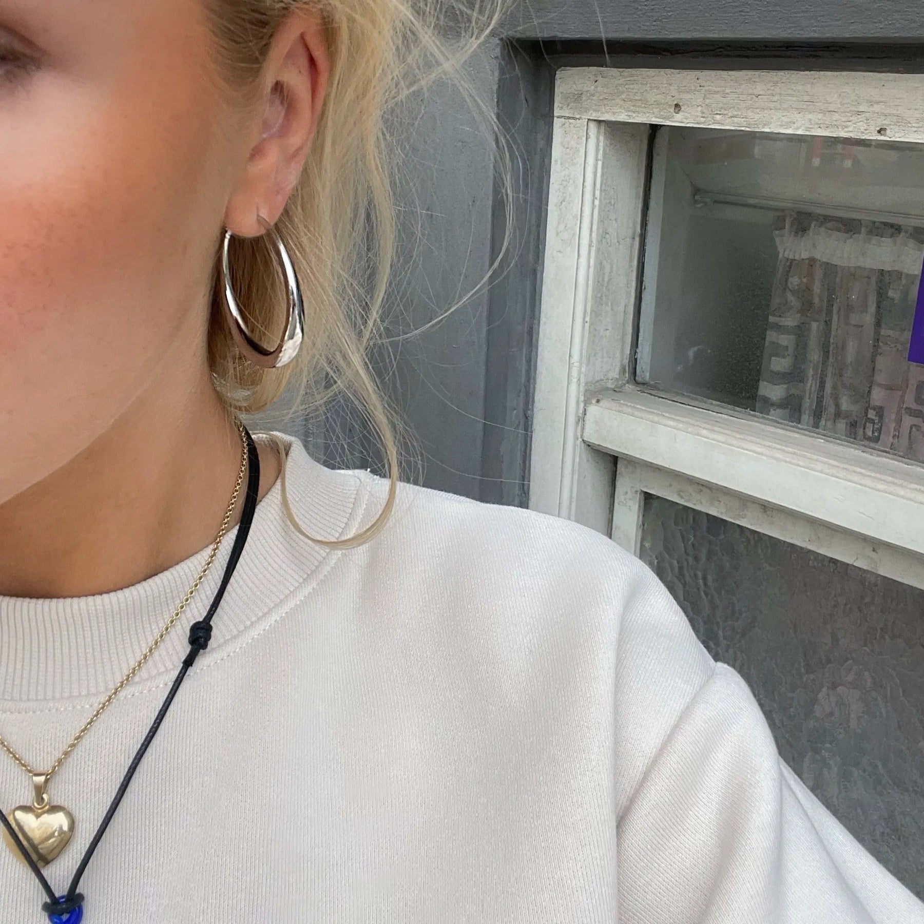 Hoopsene har en unik gradueret profil, der gør dem smalle øverst og bredere nederst, hvilket giver et moderne og tidløst udtryk. Style dem med nogle af vores andre flotte smykker for at skabe dit personlige look. Du kan finde flere skønne smykker her i shoppen!