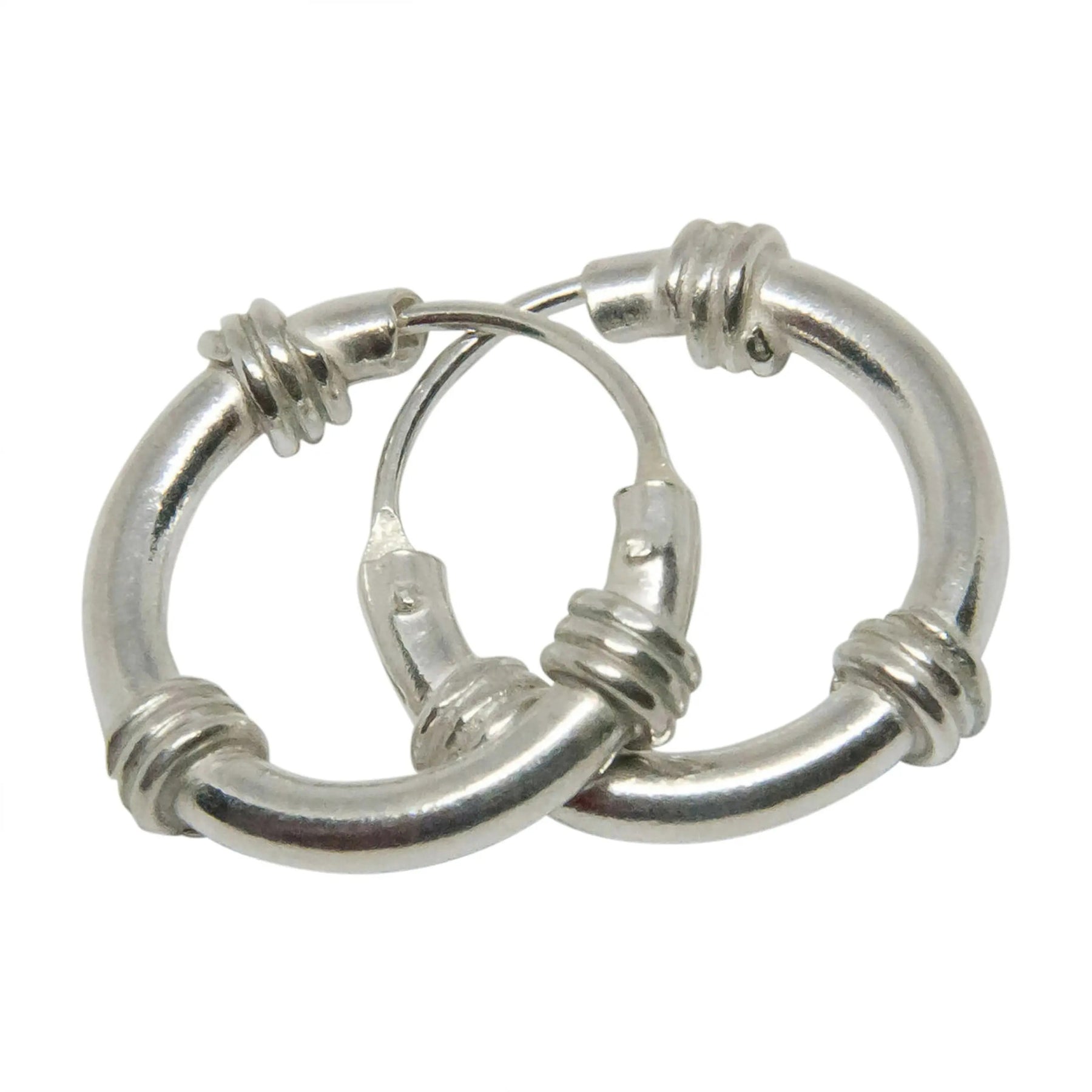 Opdag vores smukke hoops med viklinger i oxideret sterlingsølv, der tilføjer et unikt og etnisk inspireret touch til dit smykkesamling. Disse hoops er designet til at være alsidige, så du kan bære dem alene for et minimalistisk look eller kombinere dem med andre hoops fra vores udvalg for en mere iøjnefaldende stil.