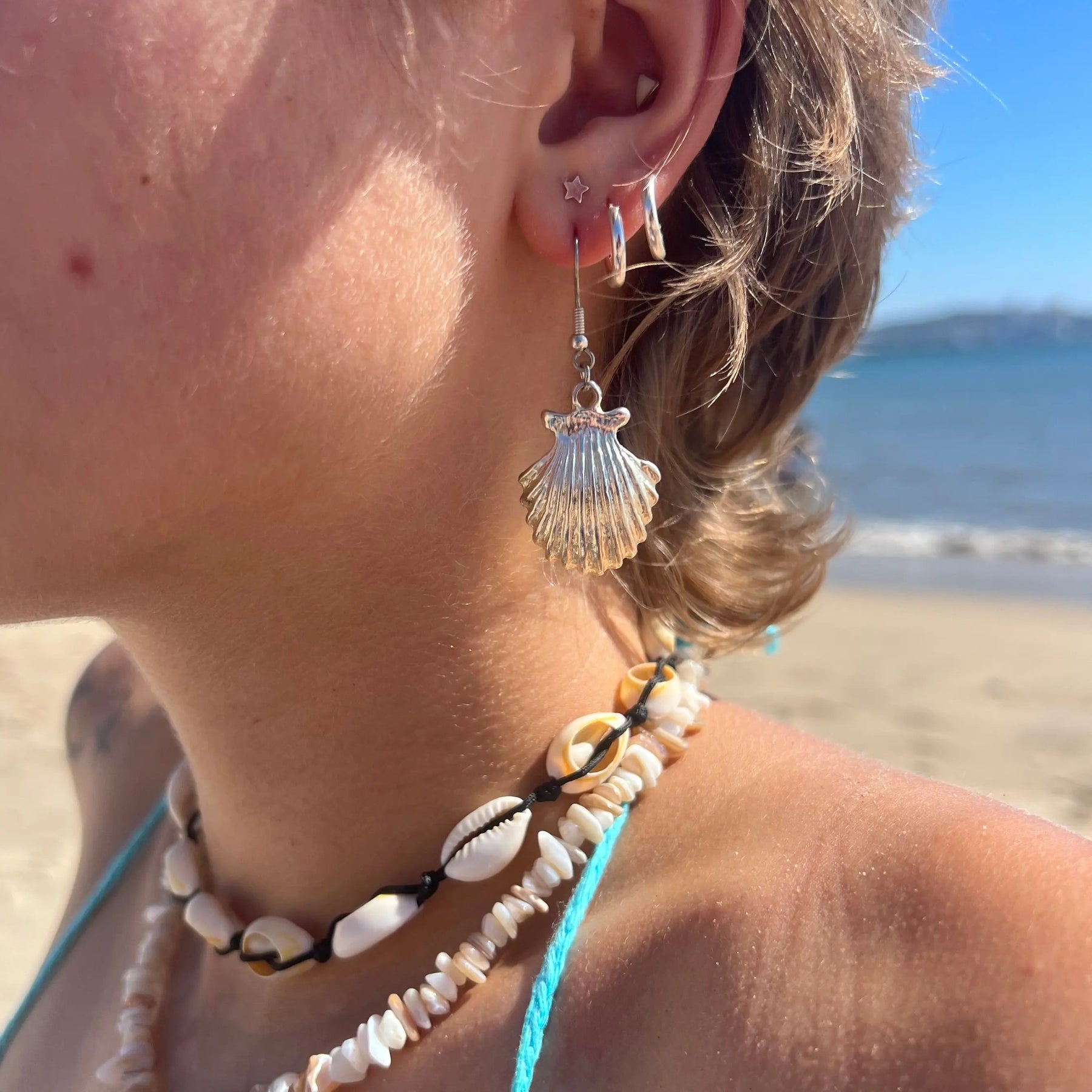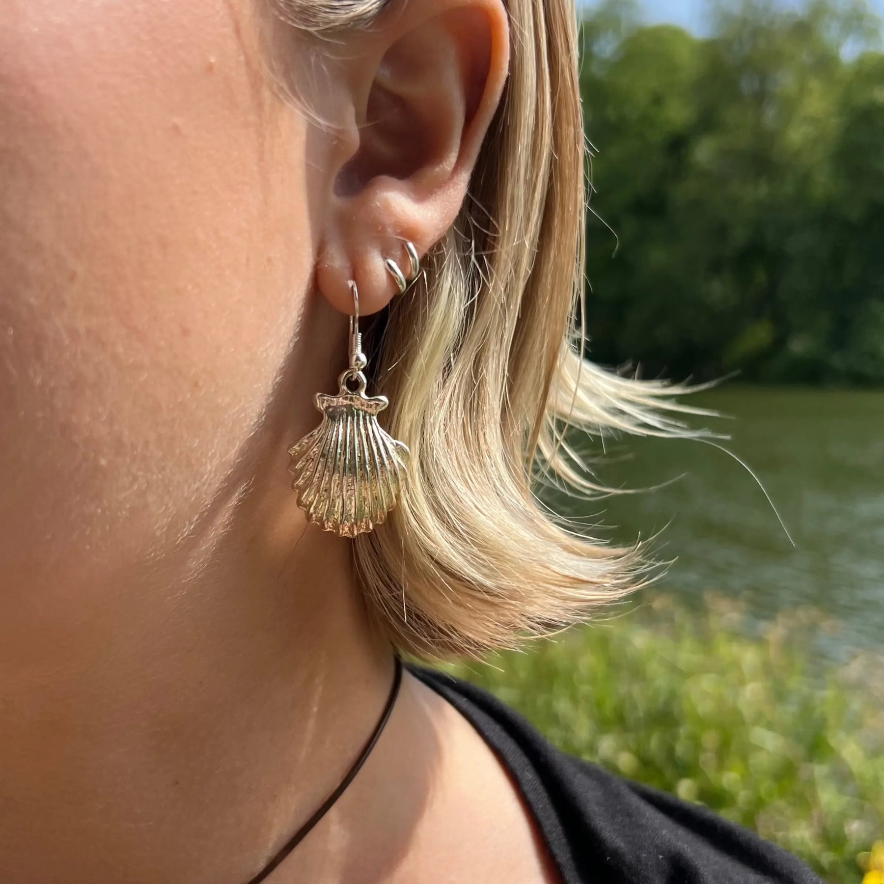Oplev skønheden i disse øreringe med inspirerende muslingedesign, der fås i både forsølvet og forgyldt messing. Hver ørering prydes med en elegant ørekrog og et vedhæng, der fanger lyset og tiltrækker opmærksomhed. Den chunky muslingeskal tilføjer en unik og naturlig dimension til dit look.