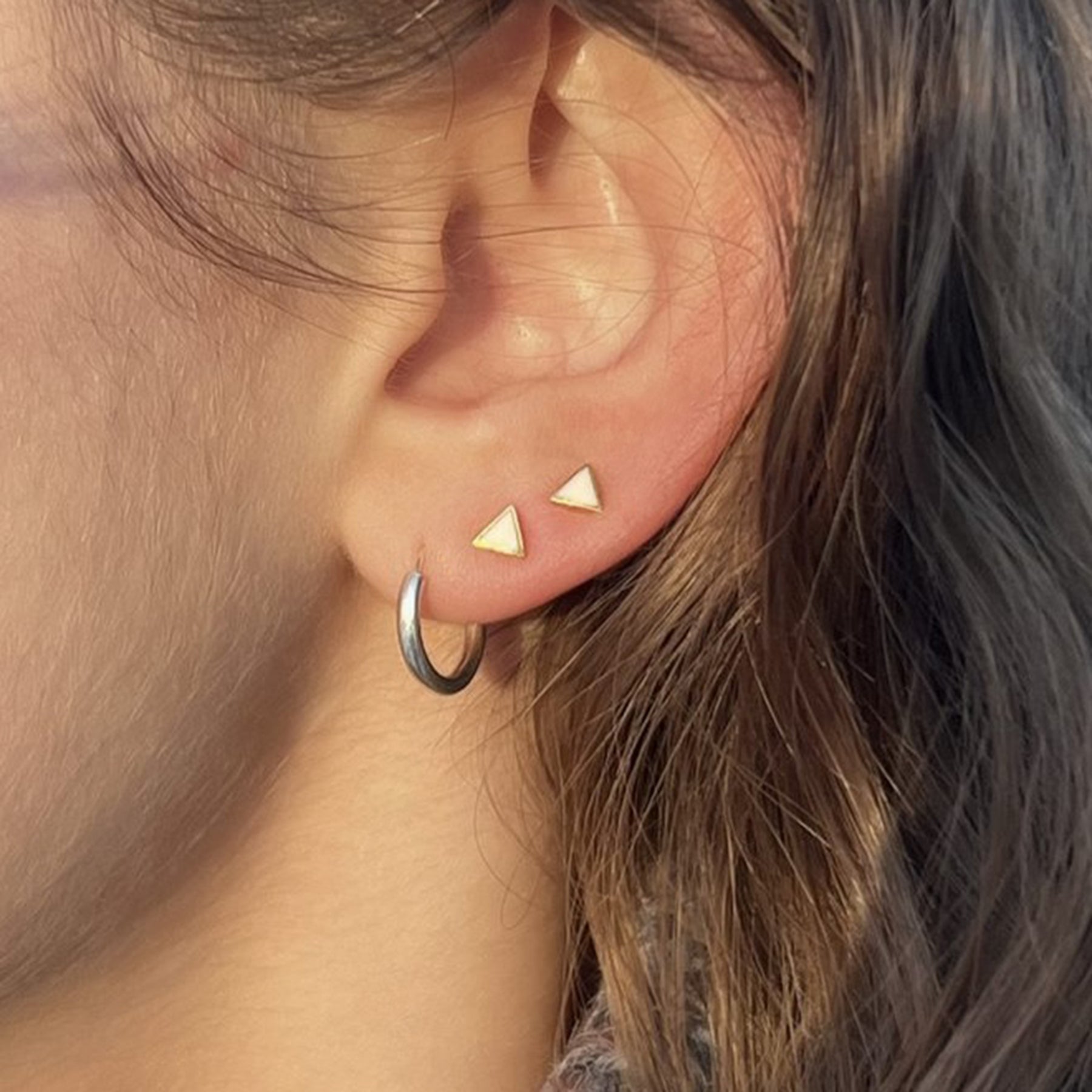 Øreringe, ørestikkere trekant af ben, sterlingsølv og forgyldt sterlingsølv
