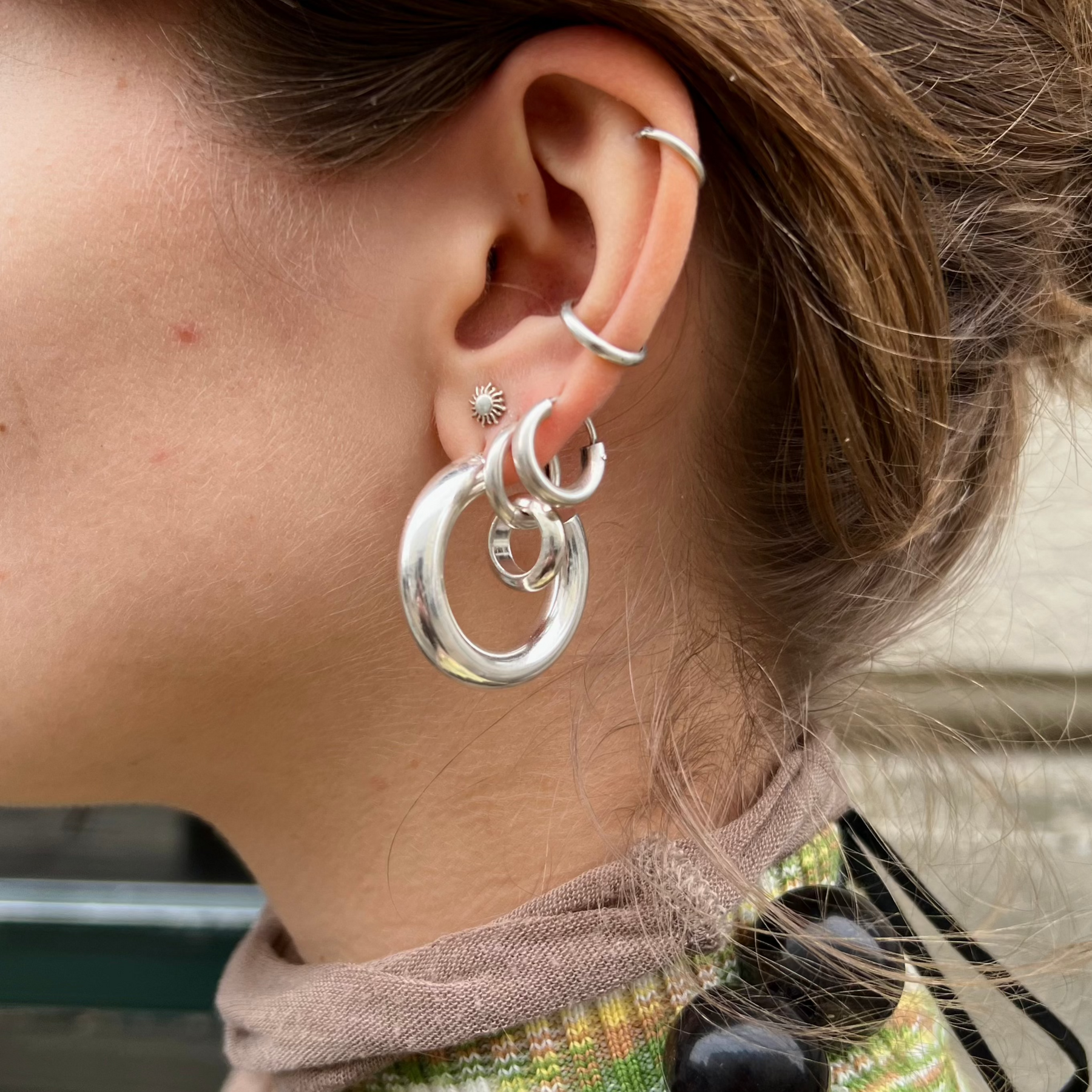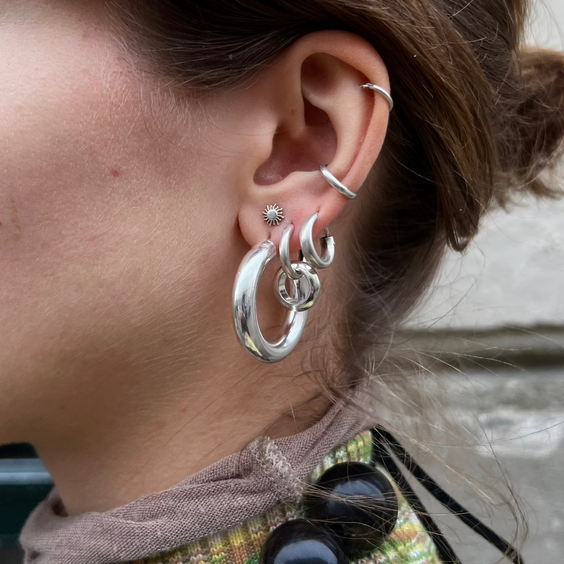 Disse chunky runde loddede øskner i forsølvet messing er den perfekte detalje til dine DIY smykker. Med deres solide og stilrene design på 13 x 3,5 mm tilfører de et råt og eksklusivt udtryk til både øreringe, halskæder og armbånd. Øsknerne er ideelle som vedhæng på simple chunky hoops, hvor de skaber et moderne og iøjnefaldende look, men kan også bruges som forbindelsesled eller dekorative elementer i dine egne smykkedesigns, f.eks. påsat et par chunky hoops, som set på billederne.