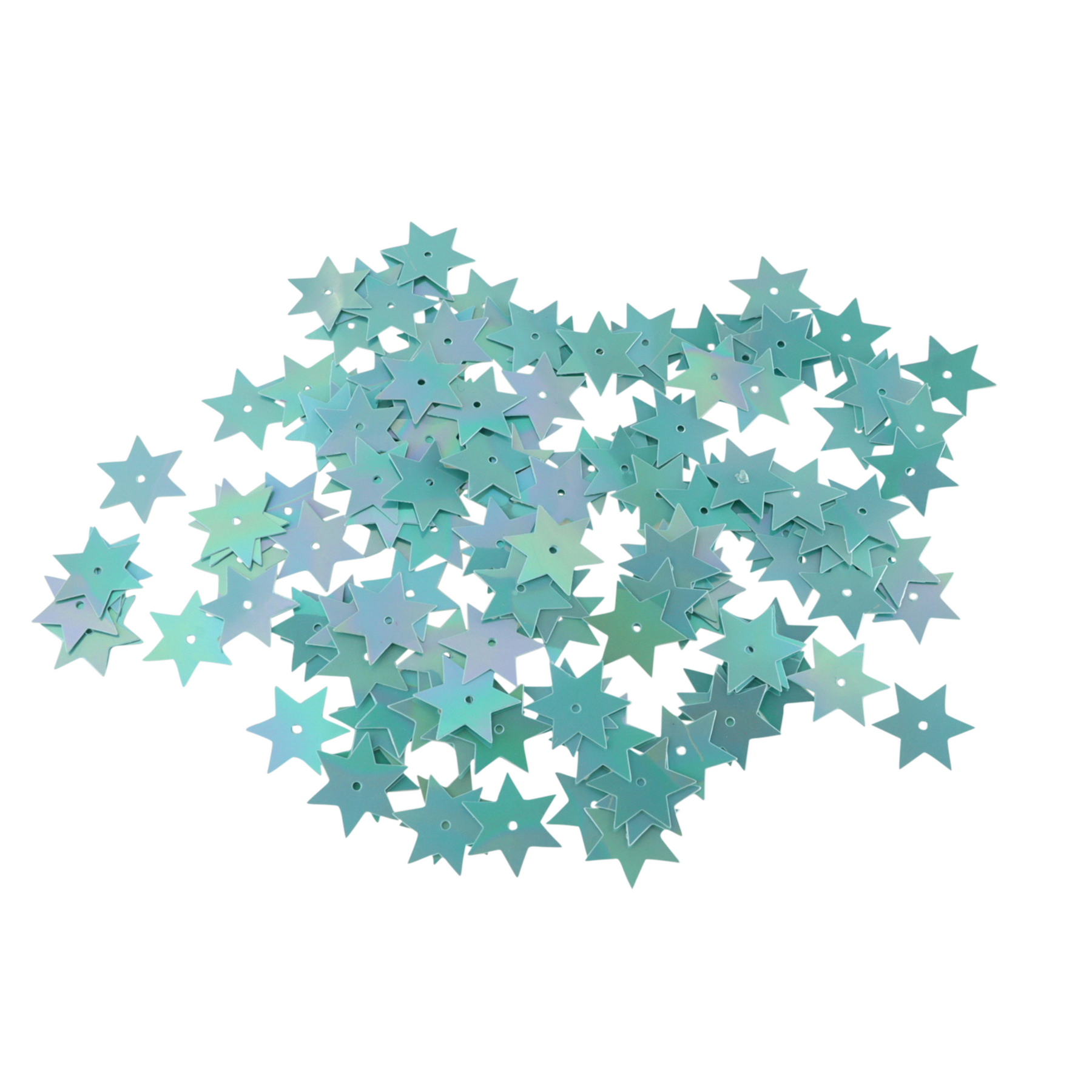 Disse stjernepailletter er gennemfarvede og har en smuk belægning, der giver et flot regnbueskær, når lyset rammer dem. De fås i størrelser mellem 14 og 17,5 mm og i flere fine farver, så du kan skabe det helt rigtige udtryk til dine kreative projekter.