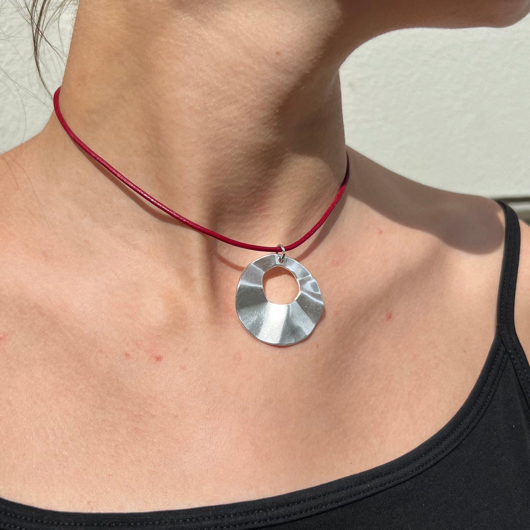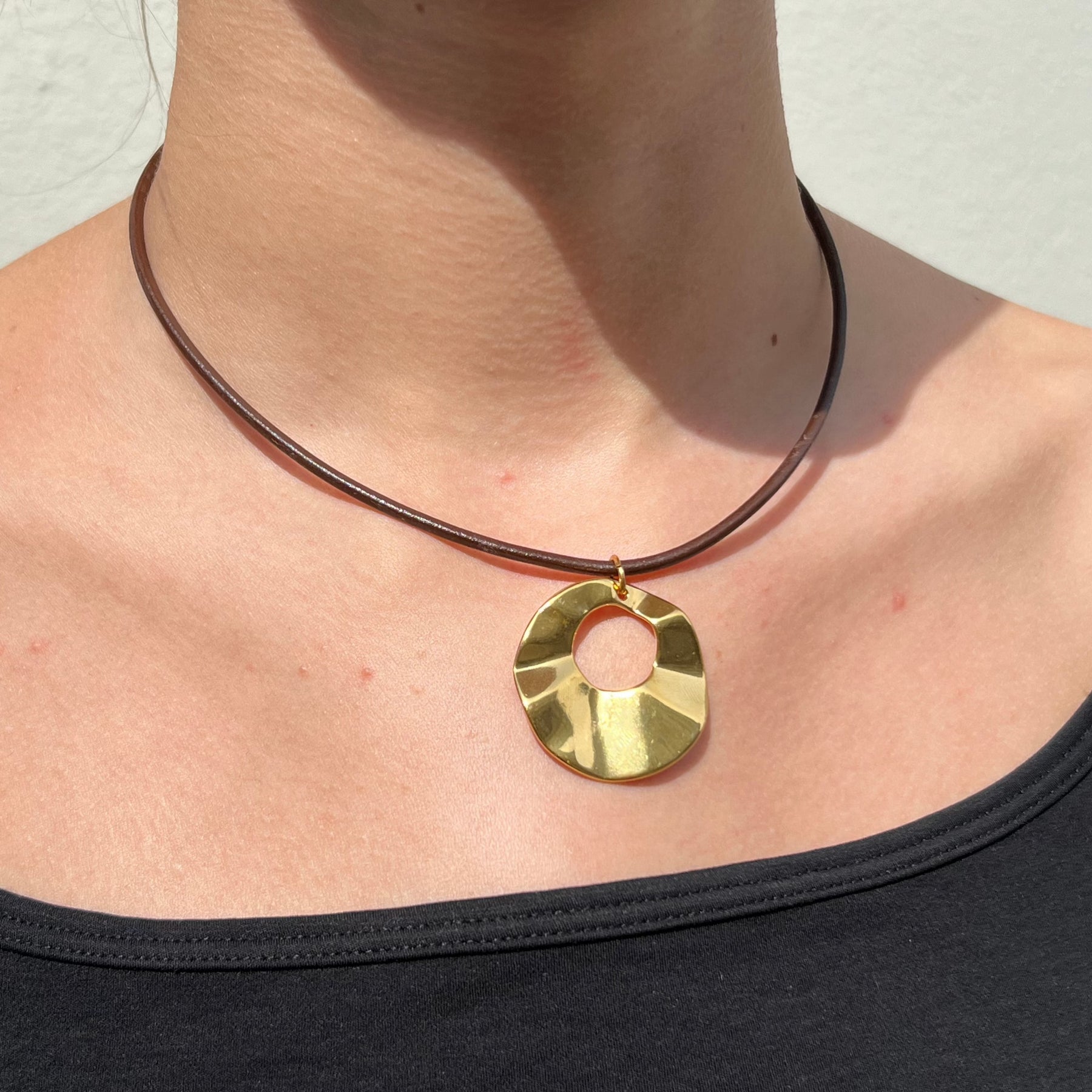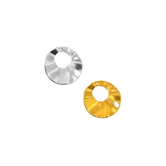 Beautiful and elegant round wavy pendant in Zamak gilded with 24 carat gold or coated with sterling silver. Perfect for putting on a necklace or in a few hoops. Super trendy.