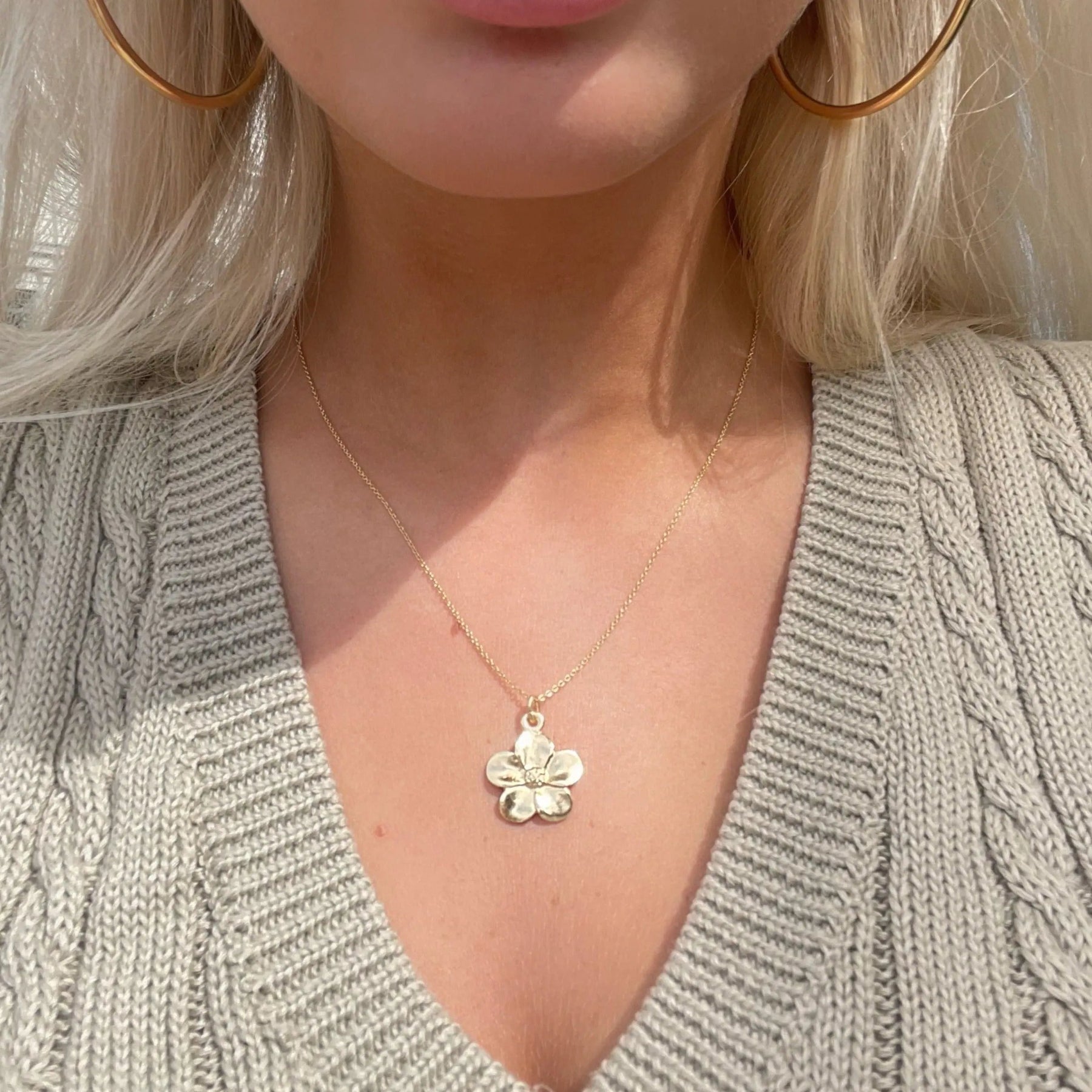 Super trendy little flower pendant with oval jump ring In gilded brass.
