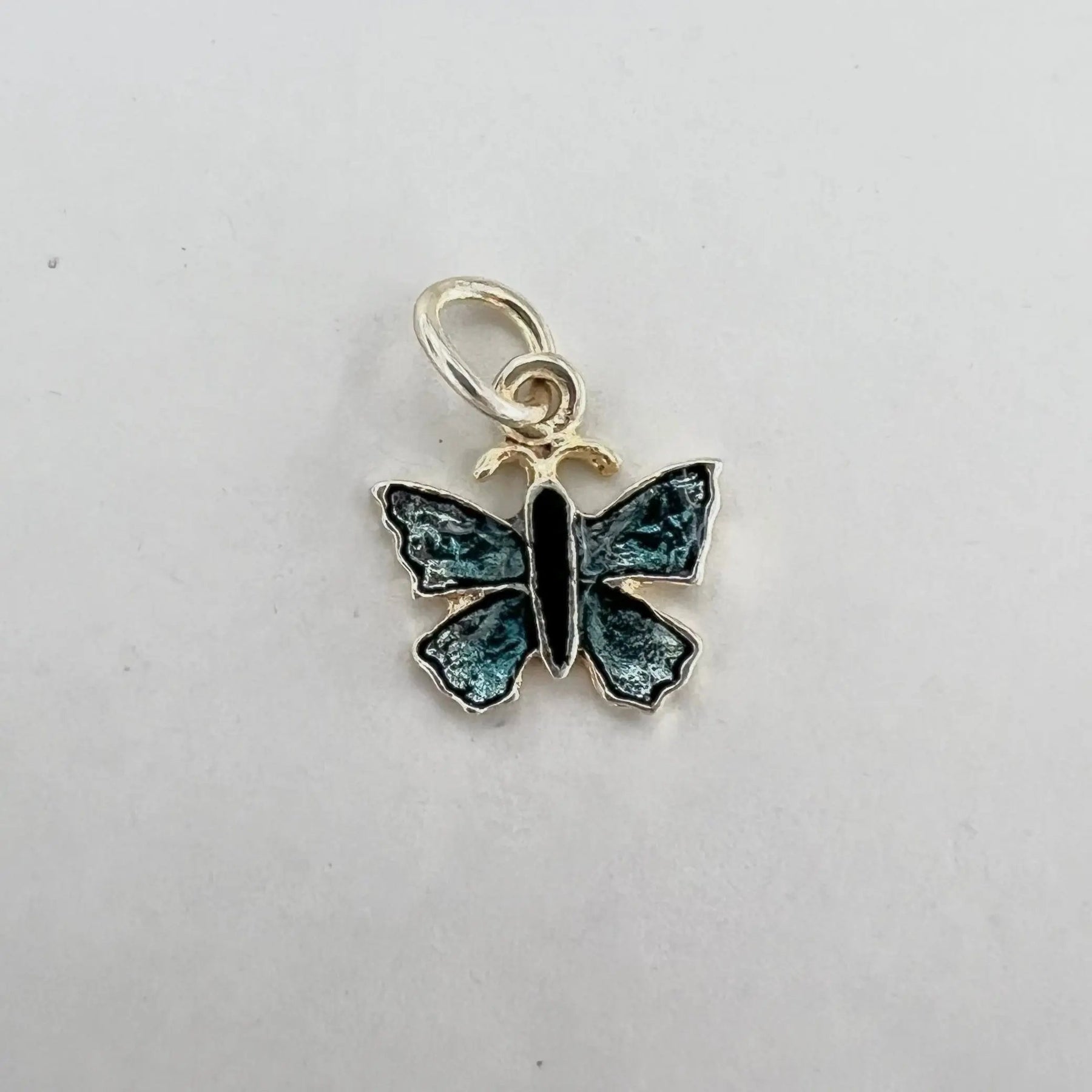 Pendant, butterfly, silver -plated brass, 20 x 19 mm