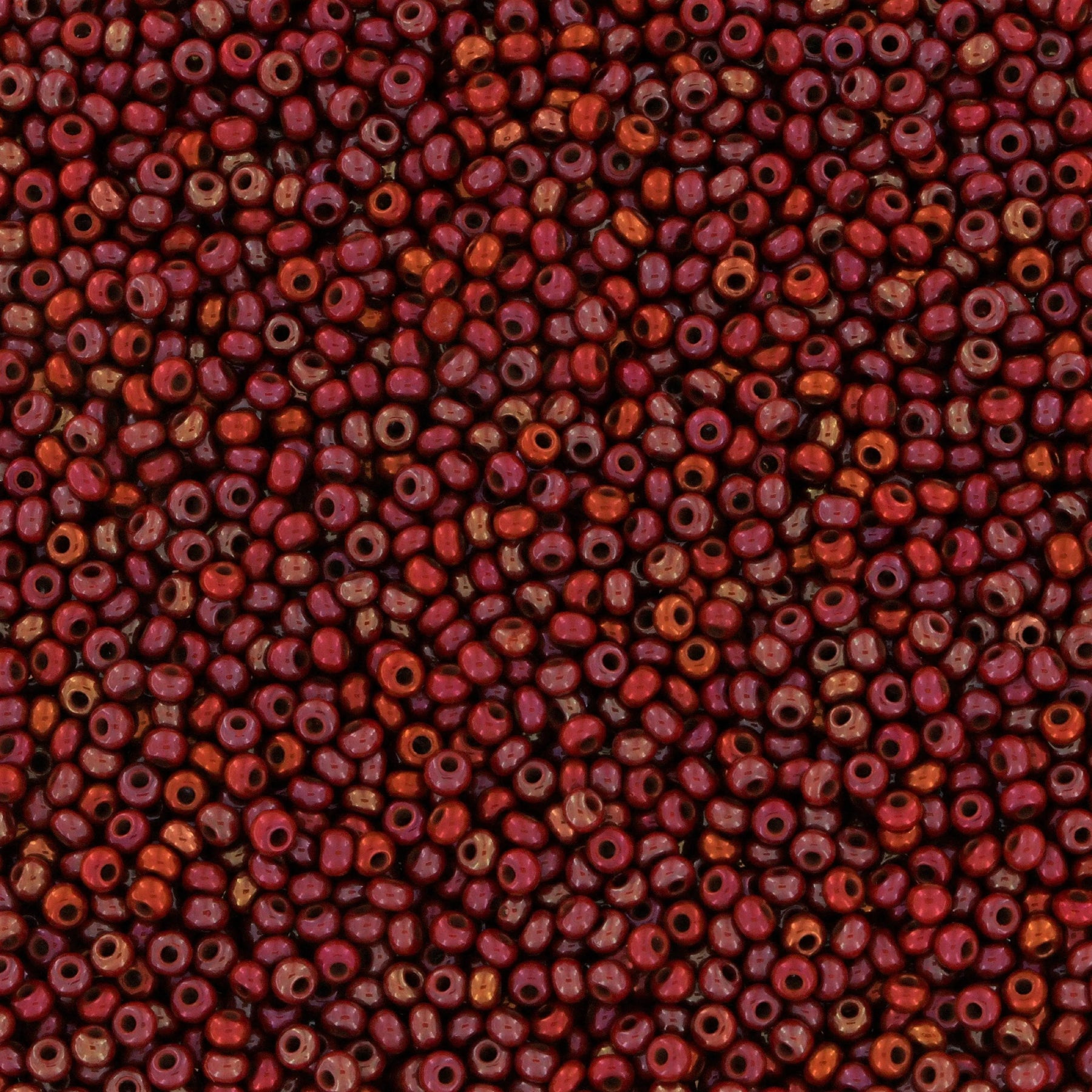 Small brown glass beads with rainbows.