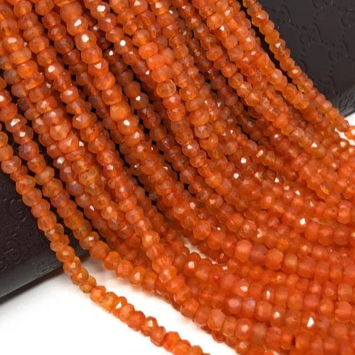 Smuk, facetteret rondel-perle i karneol med en varm, glødende orange farve. De små facetter fanger lyset og giver perlen en elegant glans – perfekt til fine smykkedetaljer som armbånd, halskæder eller øreringe.
