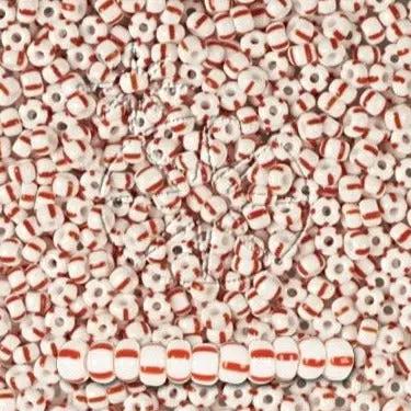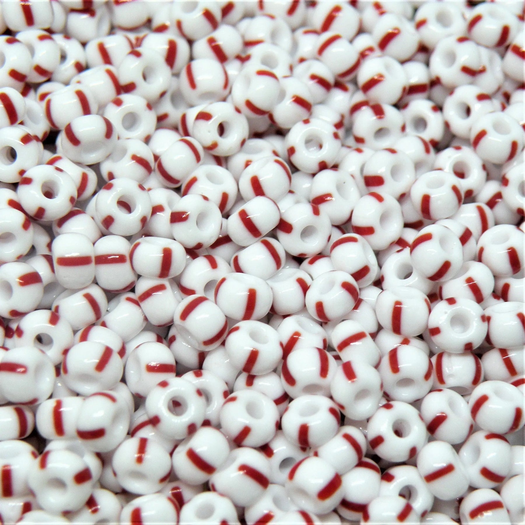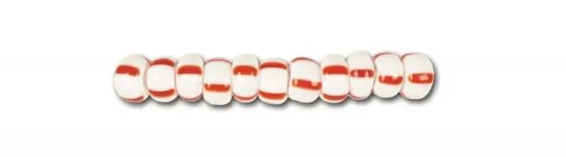Striped glass beads, Preciosa, white/4 red stripes, large purchases
