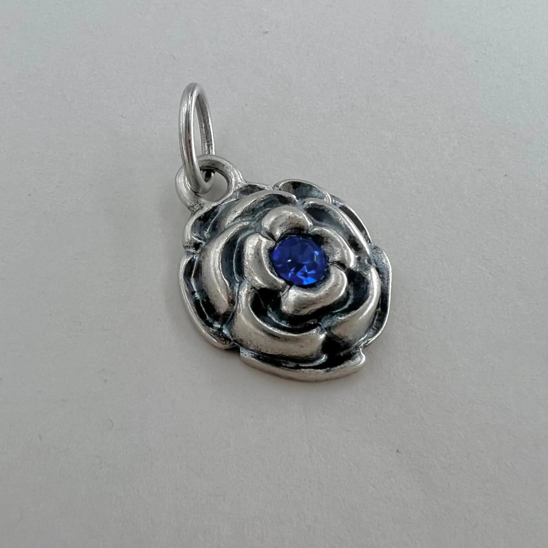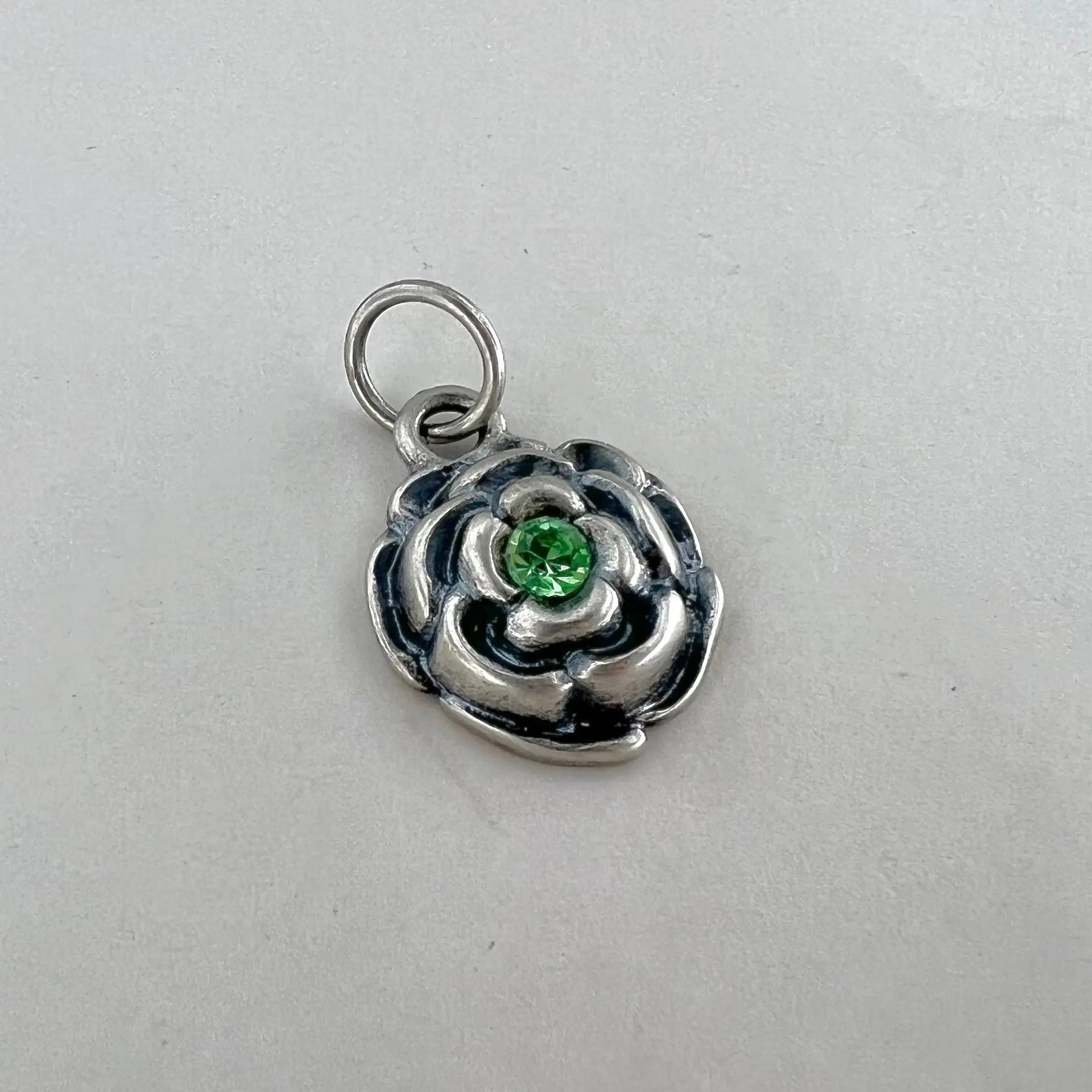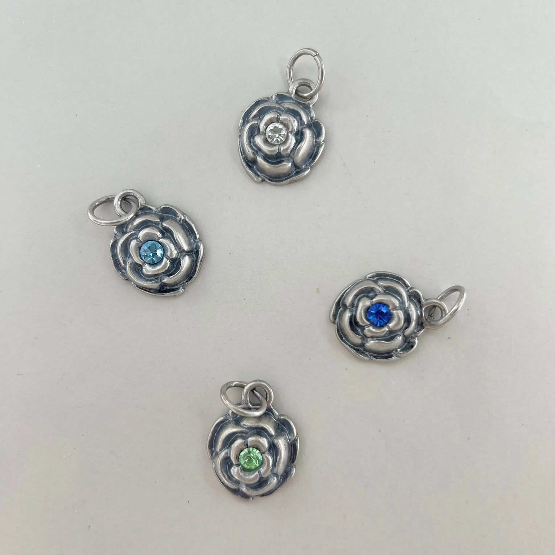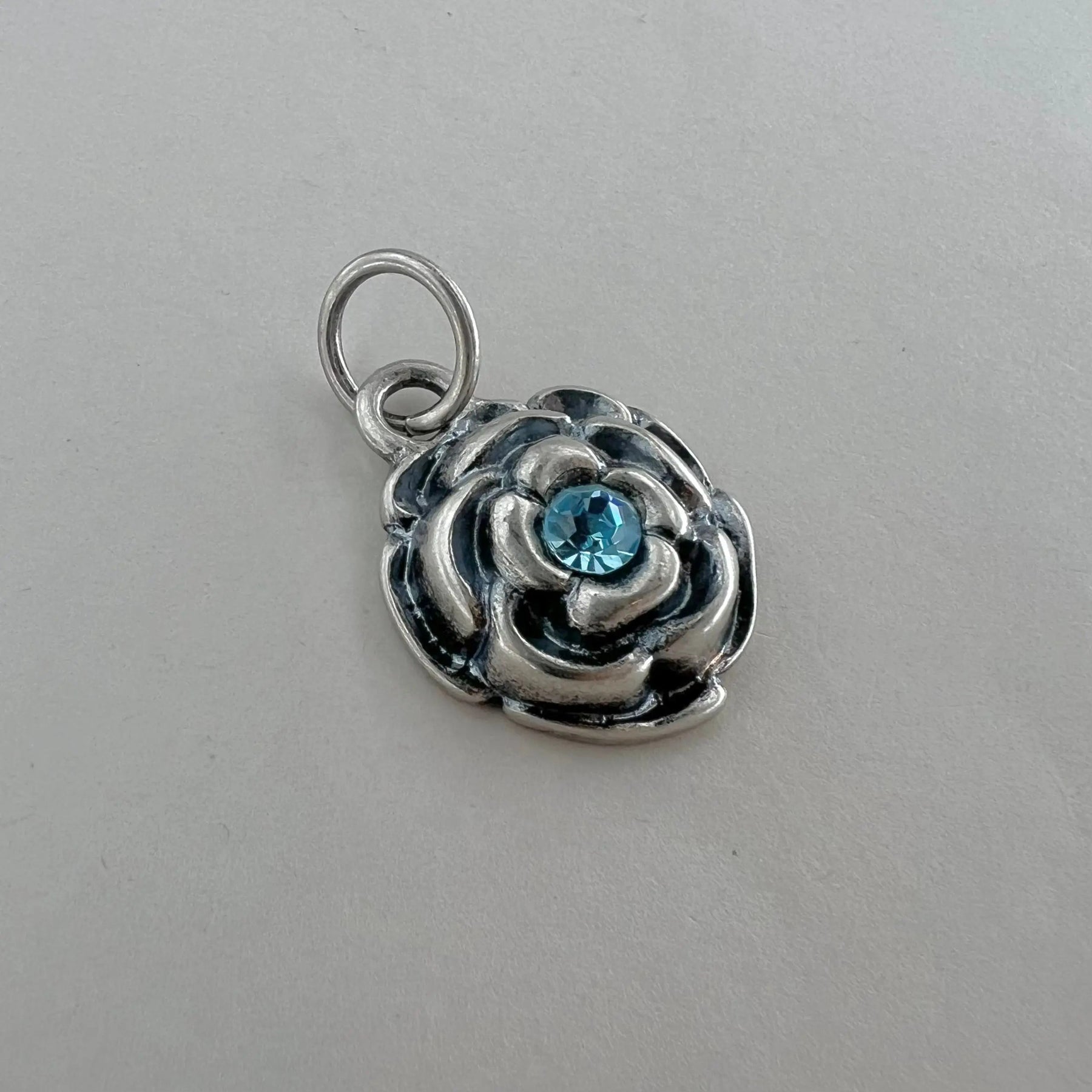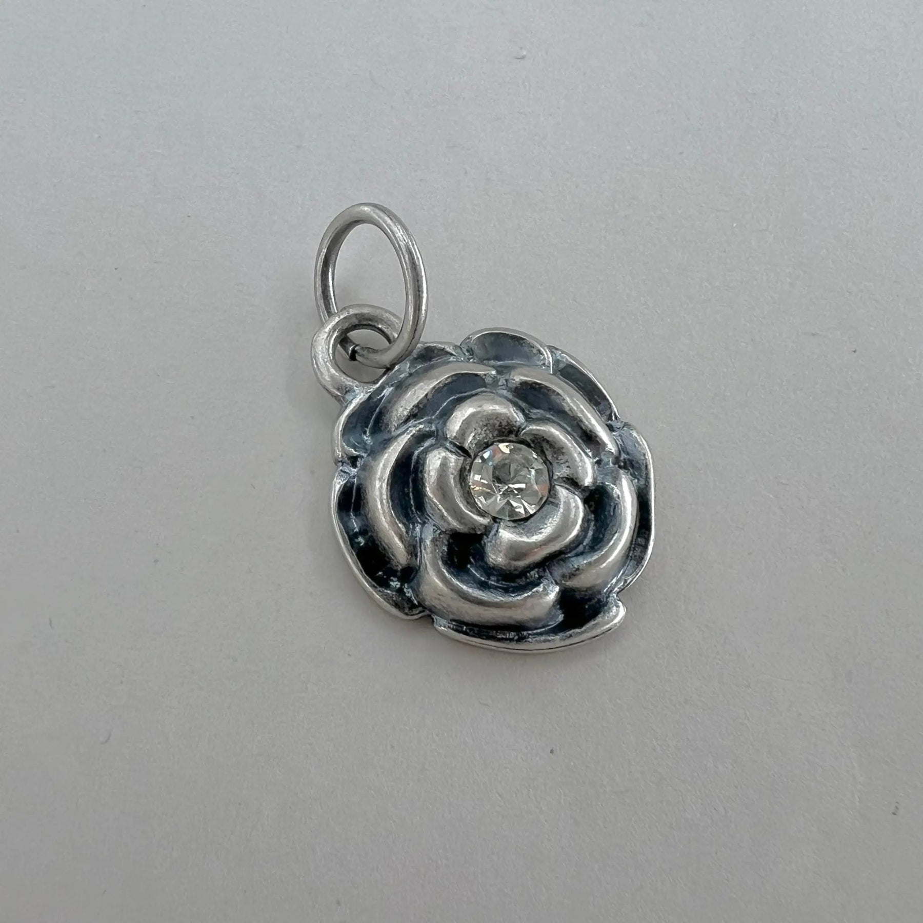 Vedhæng stor rose med krystal i forsølvet messing/aluminium