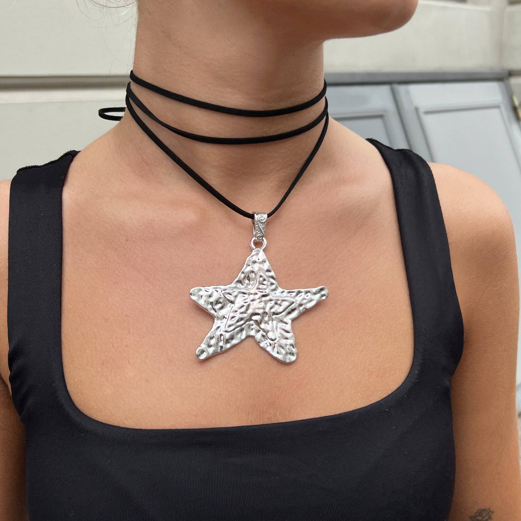 Tilføj et strejf af havets skønhed til din smykkesamling med dette imponerende søstjernevedhæng. Med sin unikke kombination af forgyldt og forsølvet messing, tilbyder det en iøjnefaldende detalje, der kan løfte ethvert outfit. Den bankede tekstur og elegante finish giver et råt, men stilfuldt udtryk, der gør det til et must-have for enhver modebevidst person.